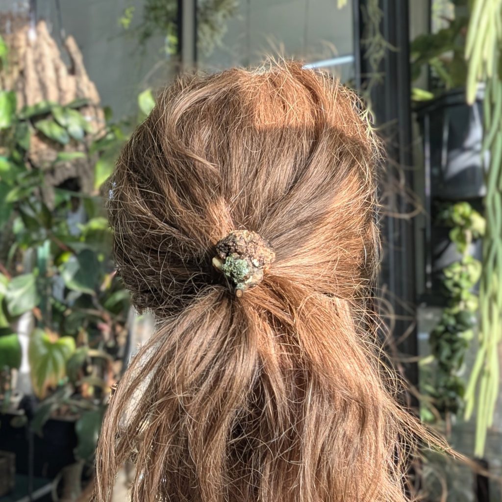Wildes Holz für dein Haar: Handgefertigter Zopfhalter mit echter Rinde und Flechten