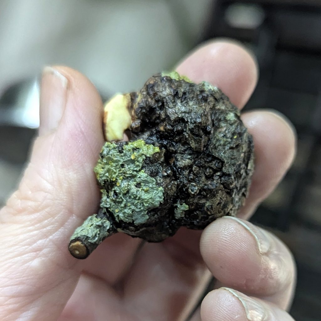 Näher kannst du der Natur nicht kommen. Diese besondere Baumperle stammt vom Gemeinen Schneeball und ist über viele Jahre hinweg an einer Knospe gewachsen. Durch dieses langsame Wachstum entstand eine faszinierende, wilde Form – inklusive der ursprünglichen Rinde und einem natürlichen Bewuchs aus Flechten.