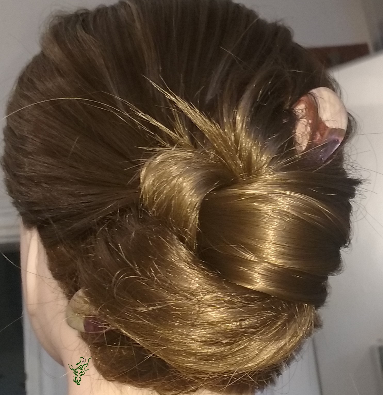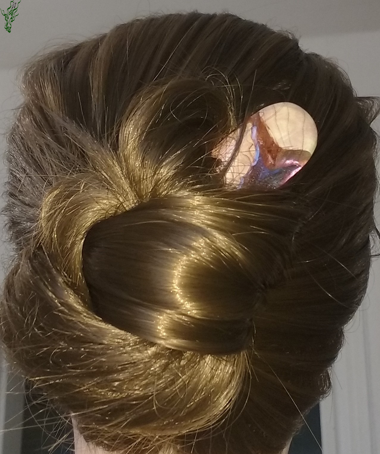 Ein Haarstab ist ein klassischer Haarschmuck. Damit kannst du deine langen Haare hochstecken. Das Video von meinem einfachsten Dutt habe ich schon einmal hier gezeigt.