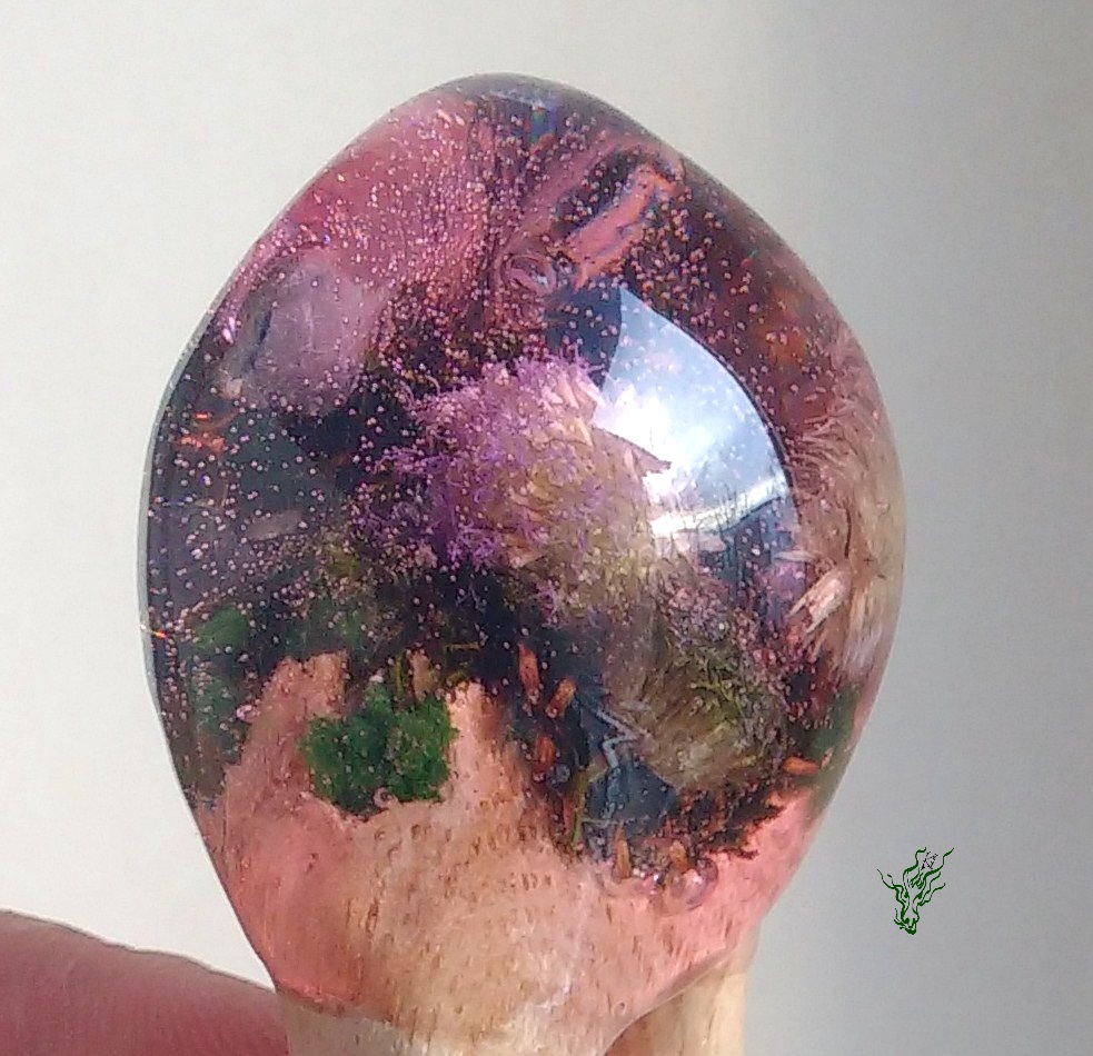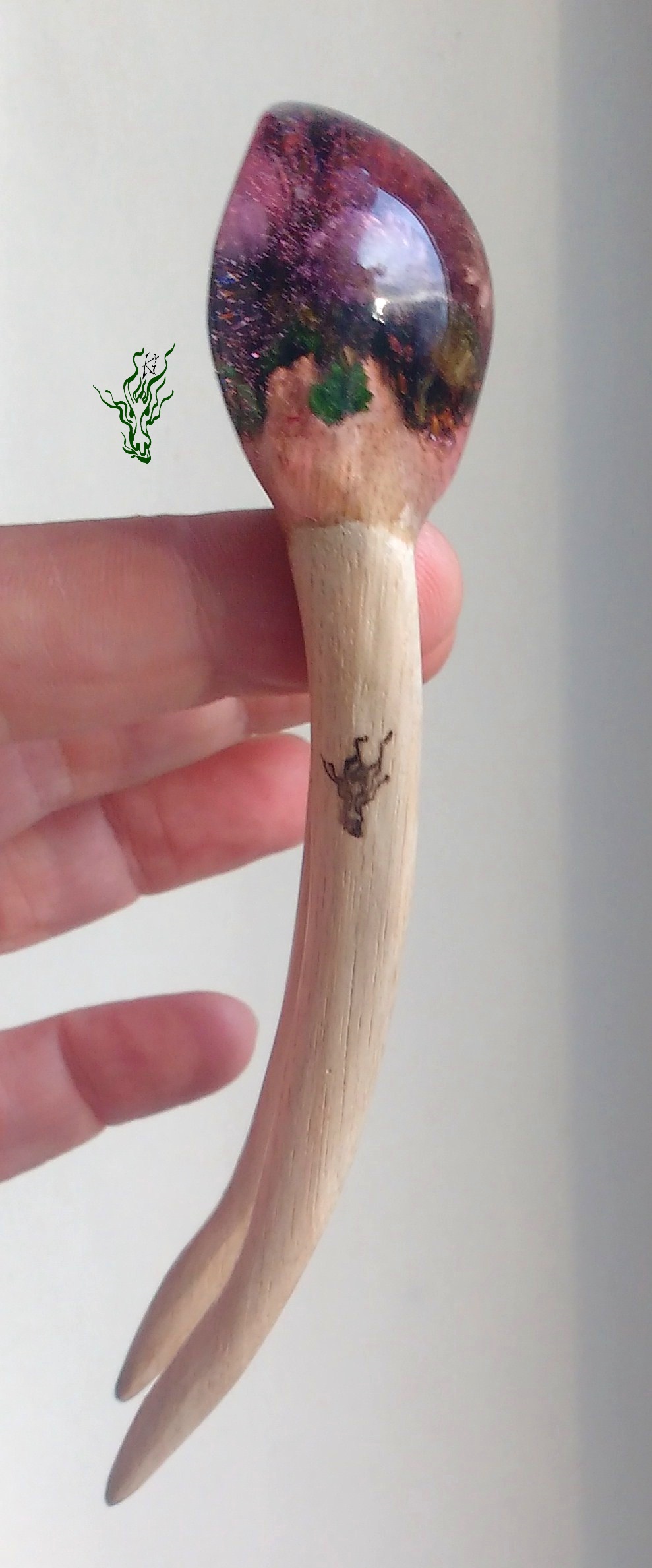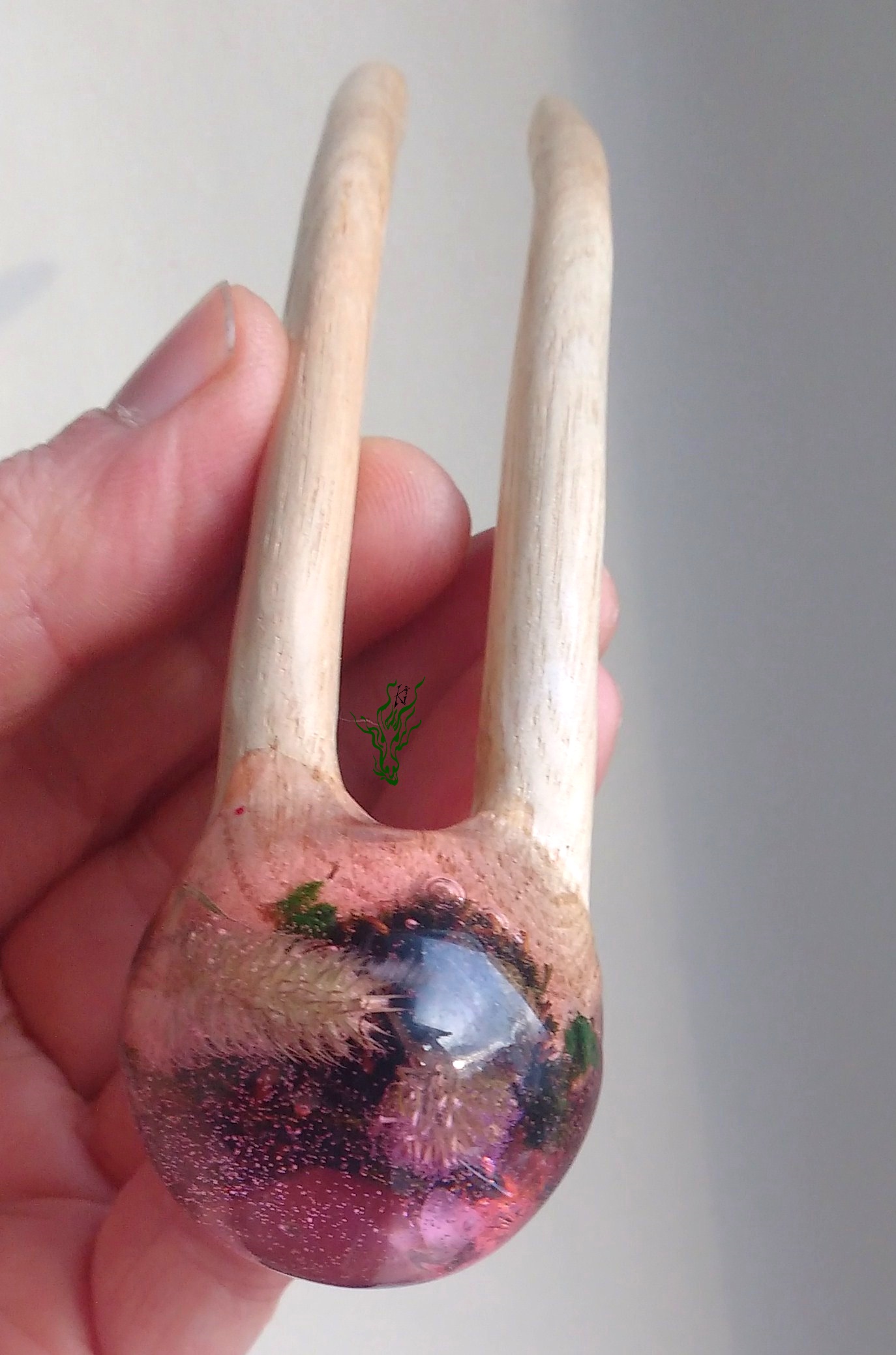 Natürlich hat diese Gletscherforke auch wieder eine Kopfwölbung, bequemen Zinkenabstand & Nöpsies für den optimalen Halt. Die hand geschnitzte Kuppel sitzt auf einer seidenglatten Haarforke aus Eschenholz.