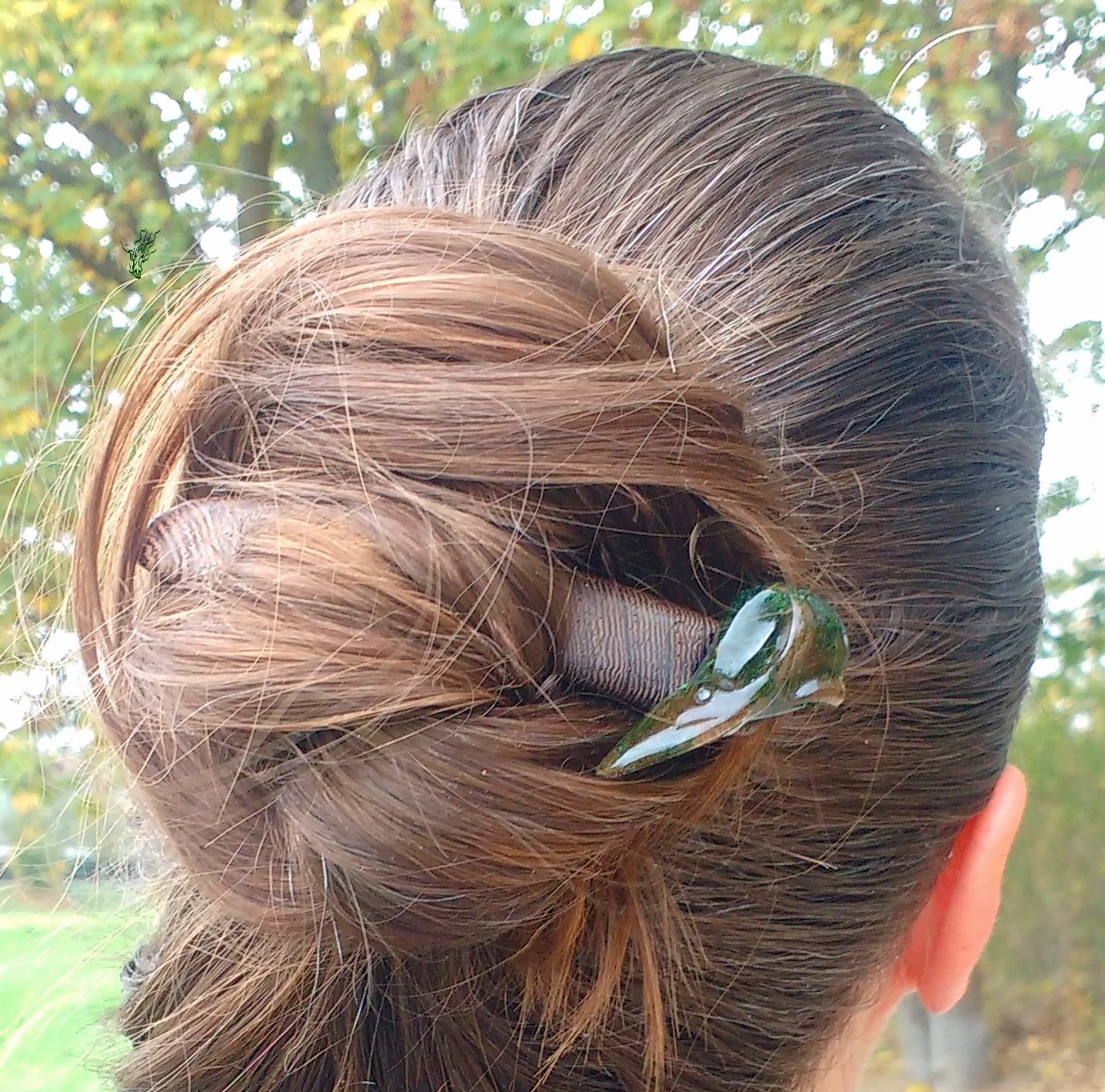 Ein Haarstab ist ein klassischer Haarschmuck. Damit kannst du deine langen Haare hochstecken. Das Video von meinem einfachsten Dutt habe ich schon einmal hier gezeigt.