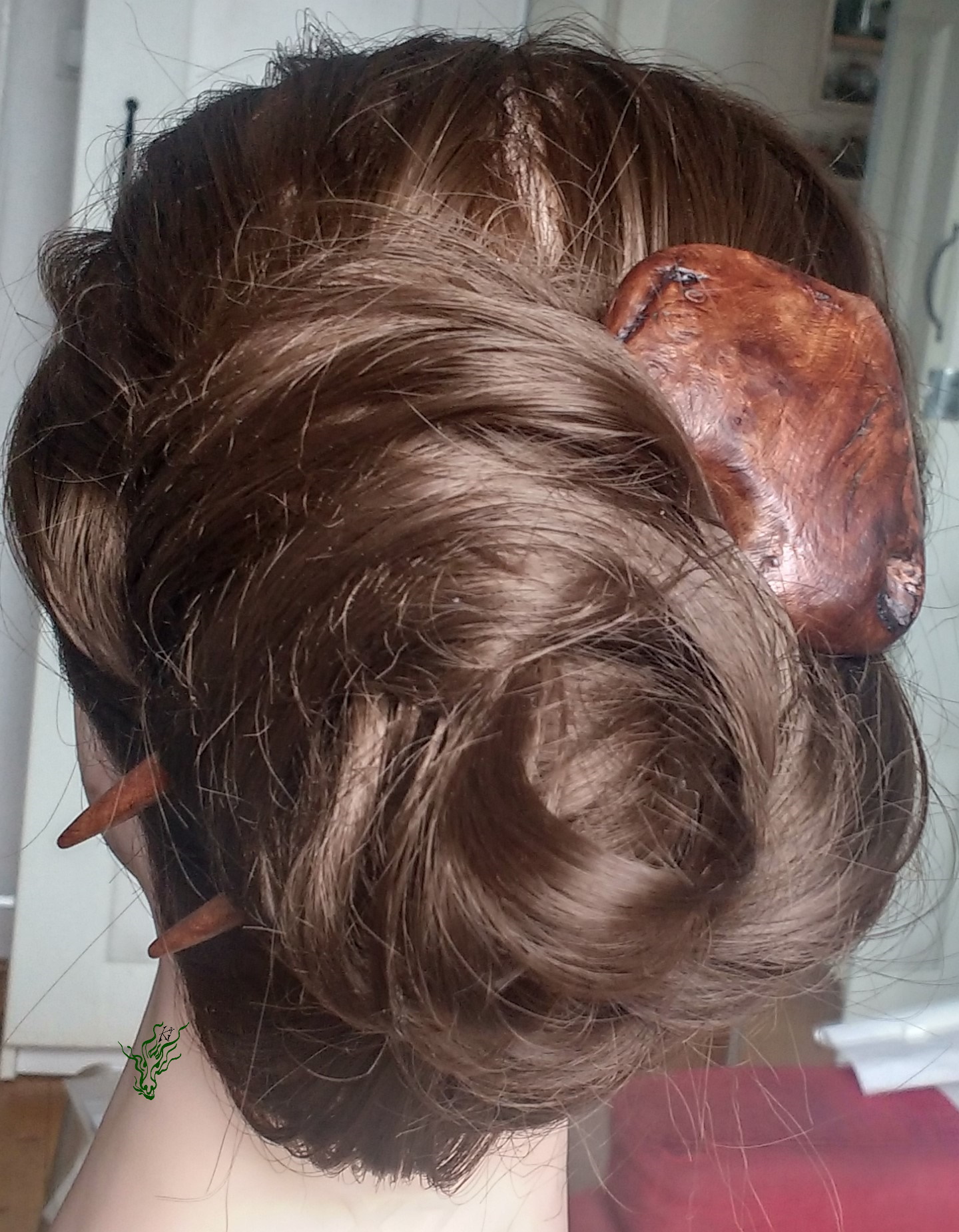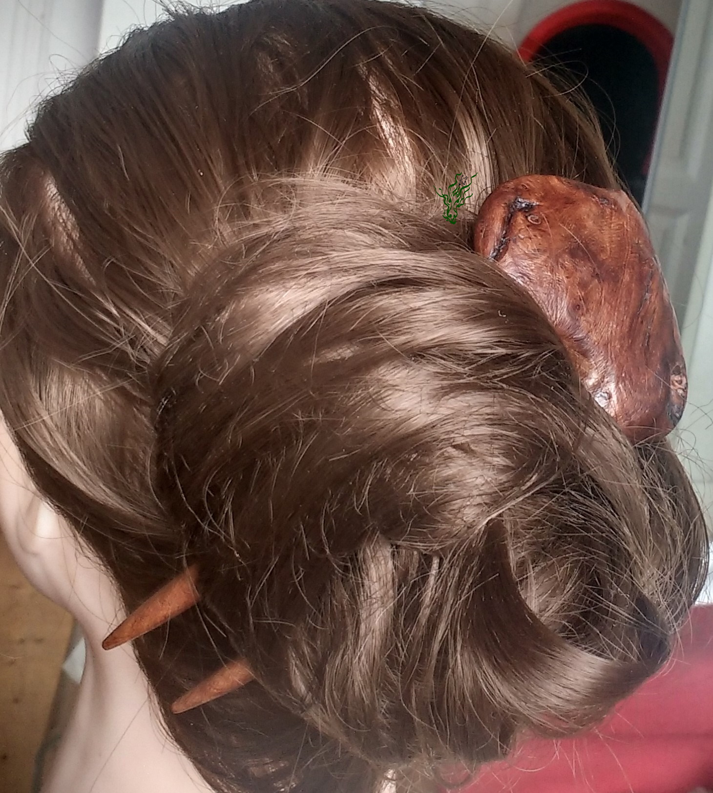 Am Ende habe ich es seidenglatt geschliffen und poliert & nun krallt es sich lieb in dein Haar. Du siehst, wie sich diese Haarforke durch ihre Kopfformbiegung in deine Frisur schmiegt für den perfekten Halt. Guter Anfänger Haarschmuck, auch für Feenhaar. Wie jeder meiner Holz Haarschmücker mit meiner Öl- Wachs- Mischung vor Feuchtigkeit geschützt.