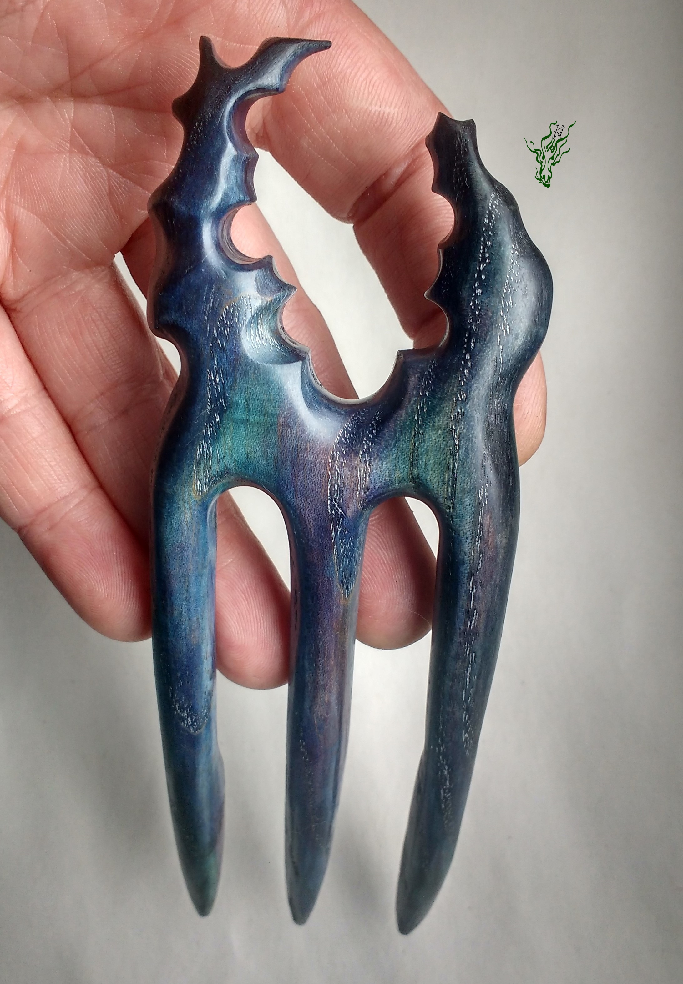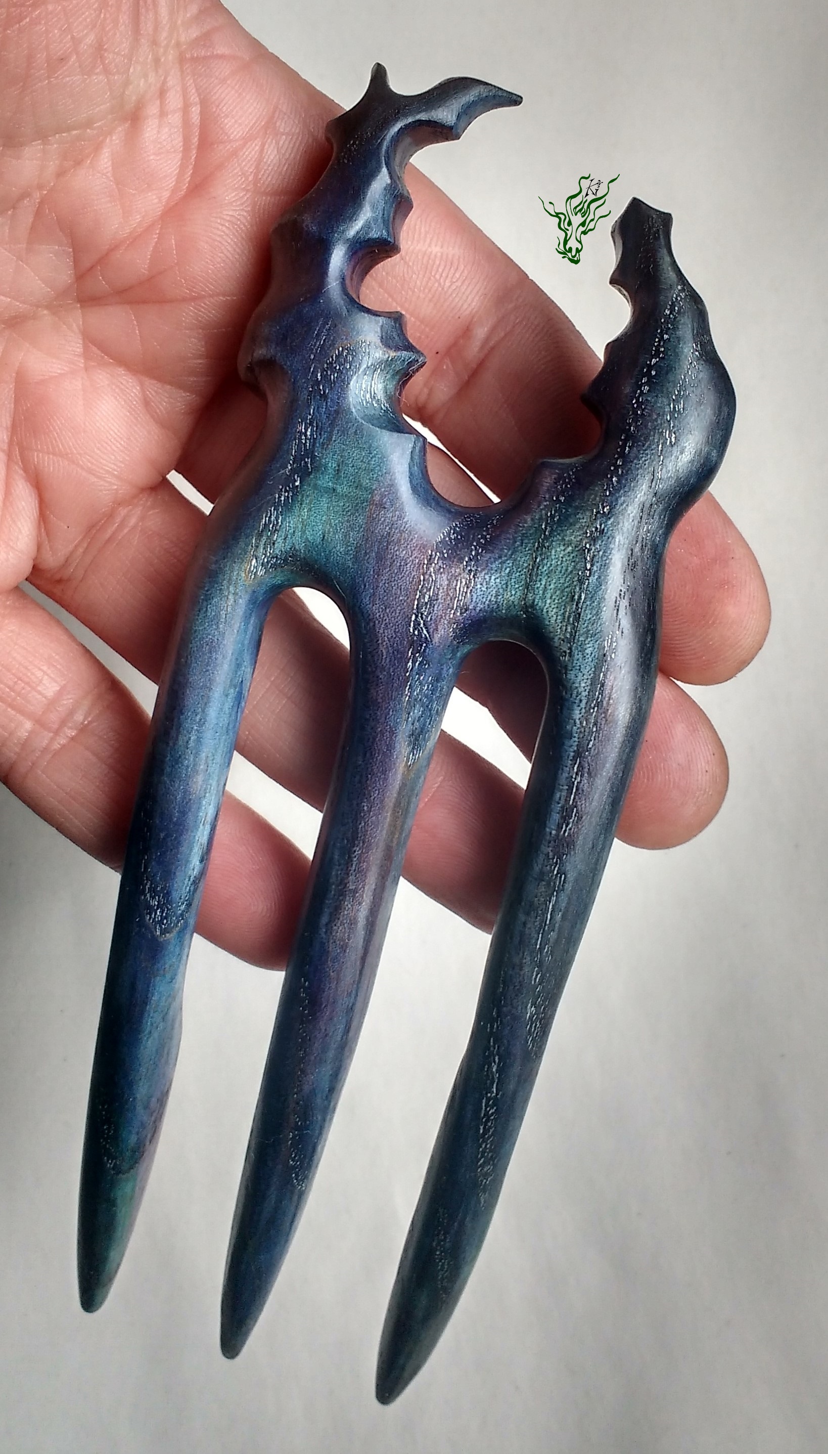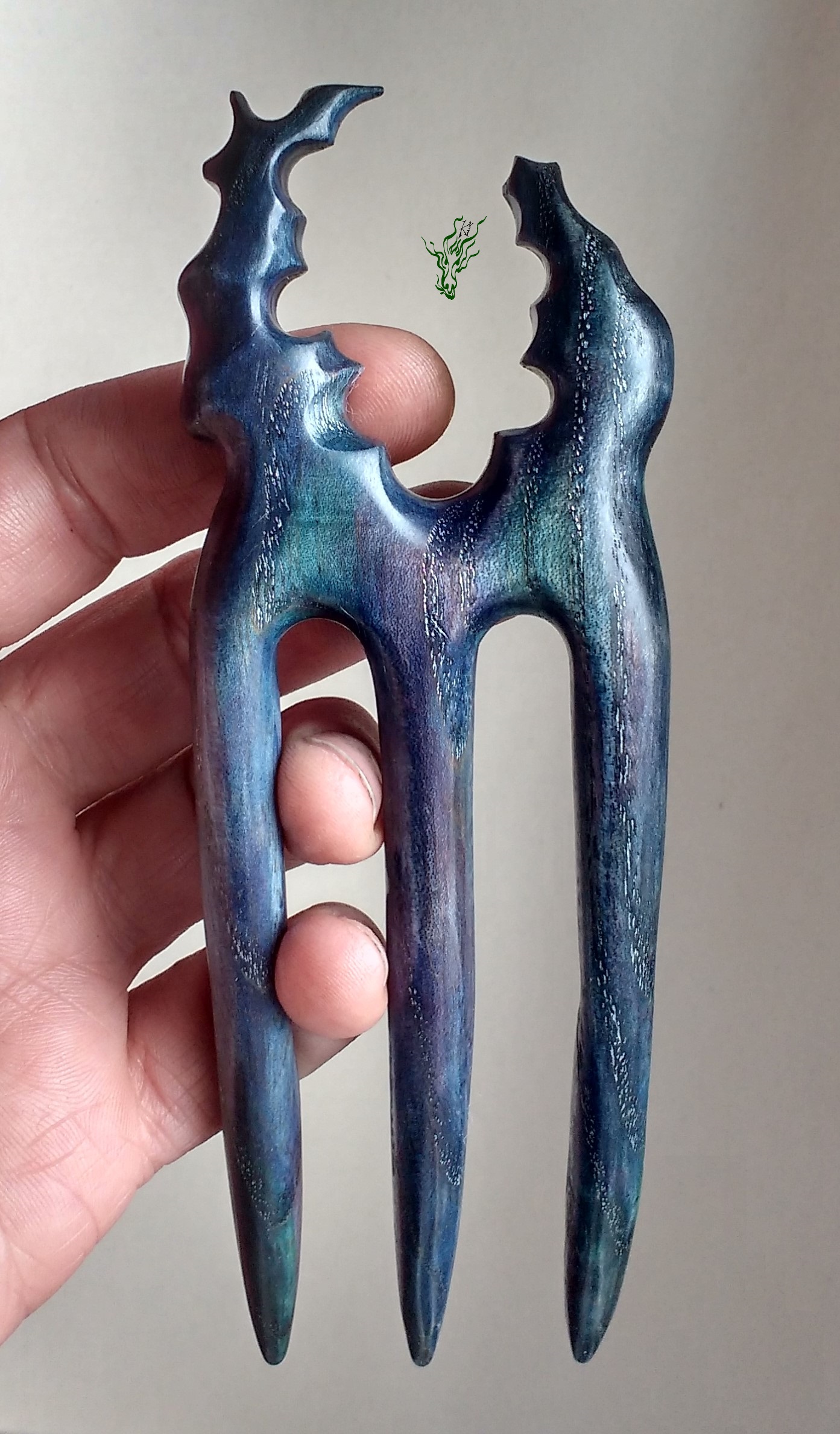 Preview *Lucanus* geschnitzte, bunte Haarforke