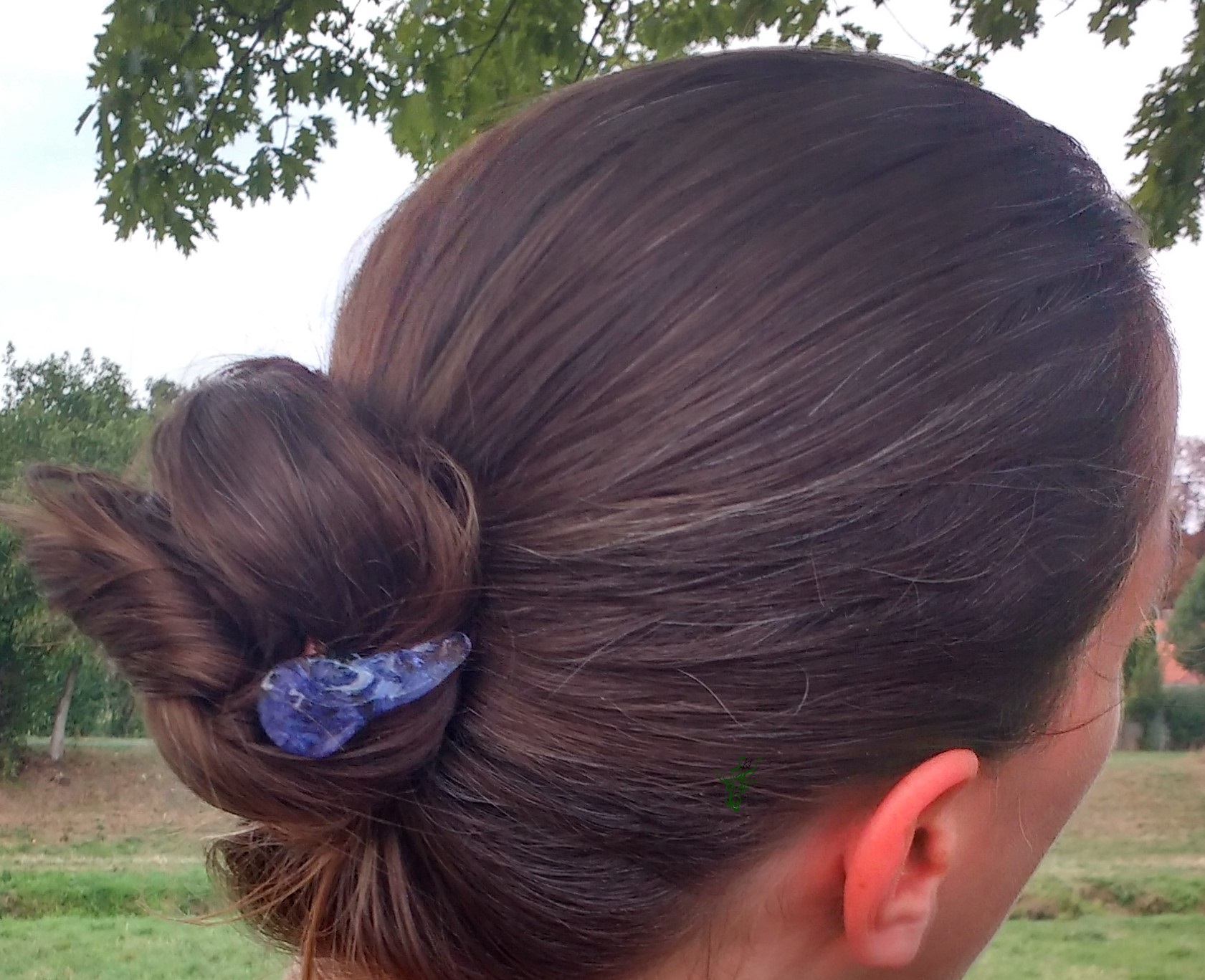 Ein Haarstab ist ein klassischer Haarschmuck. Damit kannst du deine langen Haare hochstecken. Das Video von meinem einfachsten Dutt habe ich schon einmal hier gezeigt. Wie man geschraubten Haarschmuck verwendet, kannst du dir hier im Video ansehen.