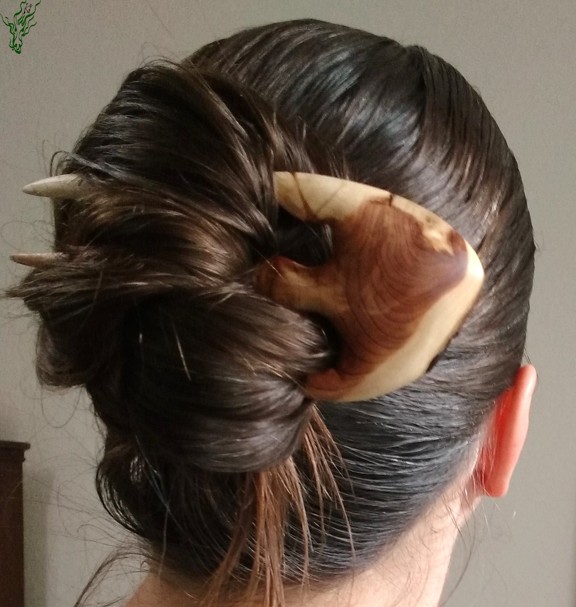 Ich kämme es dann mit meinem sehr abgerundeten Holzkamm ein – auch in die Längen – und massiere dann weiter mit dem Kamm oder den Fingern meinen Kopf. Ich muss immer ziemlich aufpassen, dass ich nicht einfach schubbernd reibe, sondern wirklich massiere, damit die Haarwurzeln nicht geschädigt werden.
