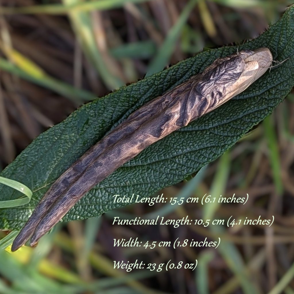 • Nachhaltiges Platanenholz: Ich fertige meine Unikate ausschließlich aus einheimischem Fundholz. Dieser Ast wurde nach einem Sturm geborgen – alt genug für eine charakterstarke Maserung, aber stabil genug für einen „Jadedrache“n.