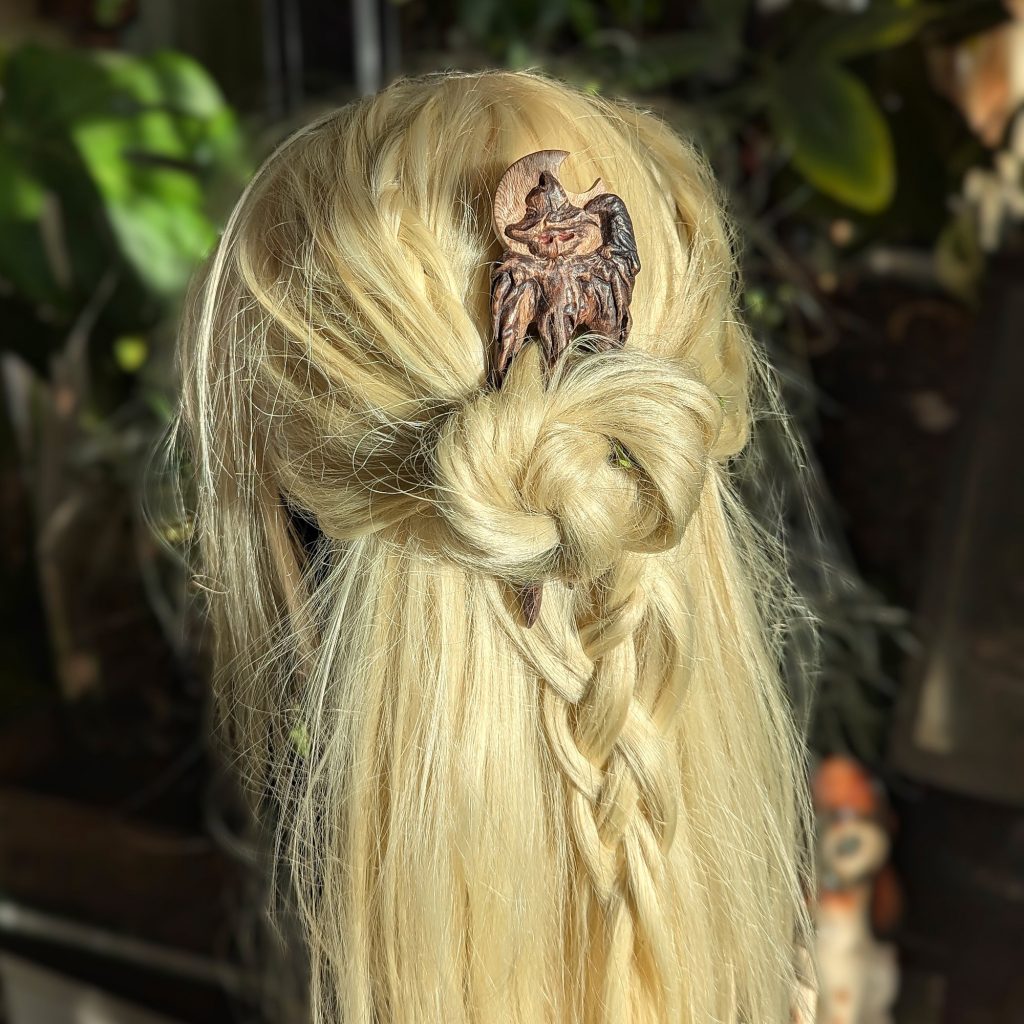 „Haunted Best Friend“ wartet darauf, ein Teil deiner Geschichte zu werden. Ein handgeschnitztes Kunstwerk für Haare mit Charakter.