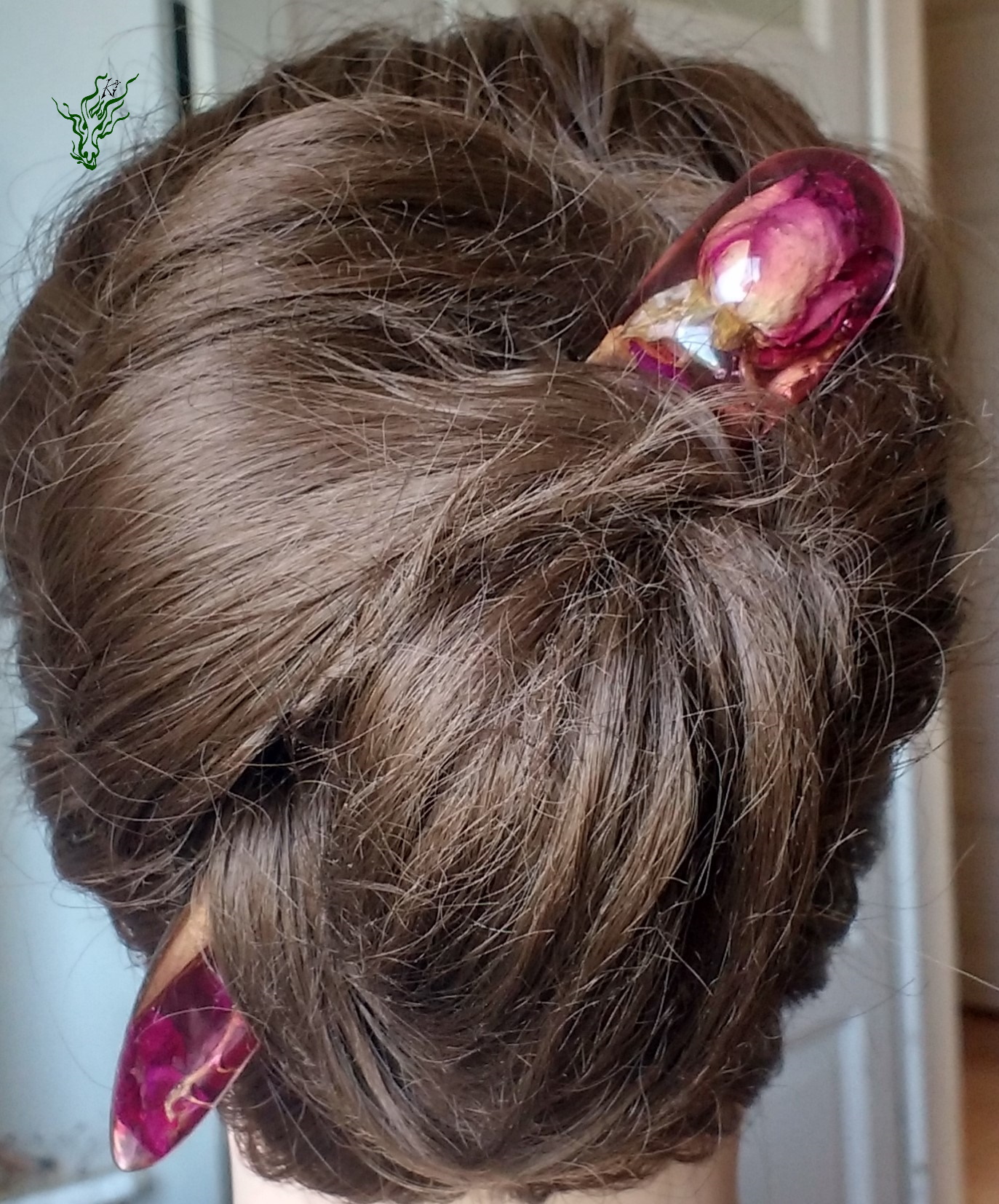 Dieser Haarschmuck wurde hier im Preview direkt adoptiert – viele andere Haarstäbe findest du in meinem EtsyShop