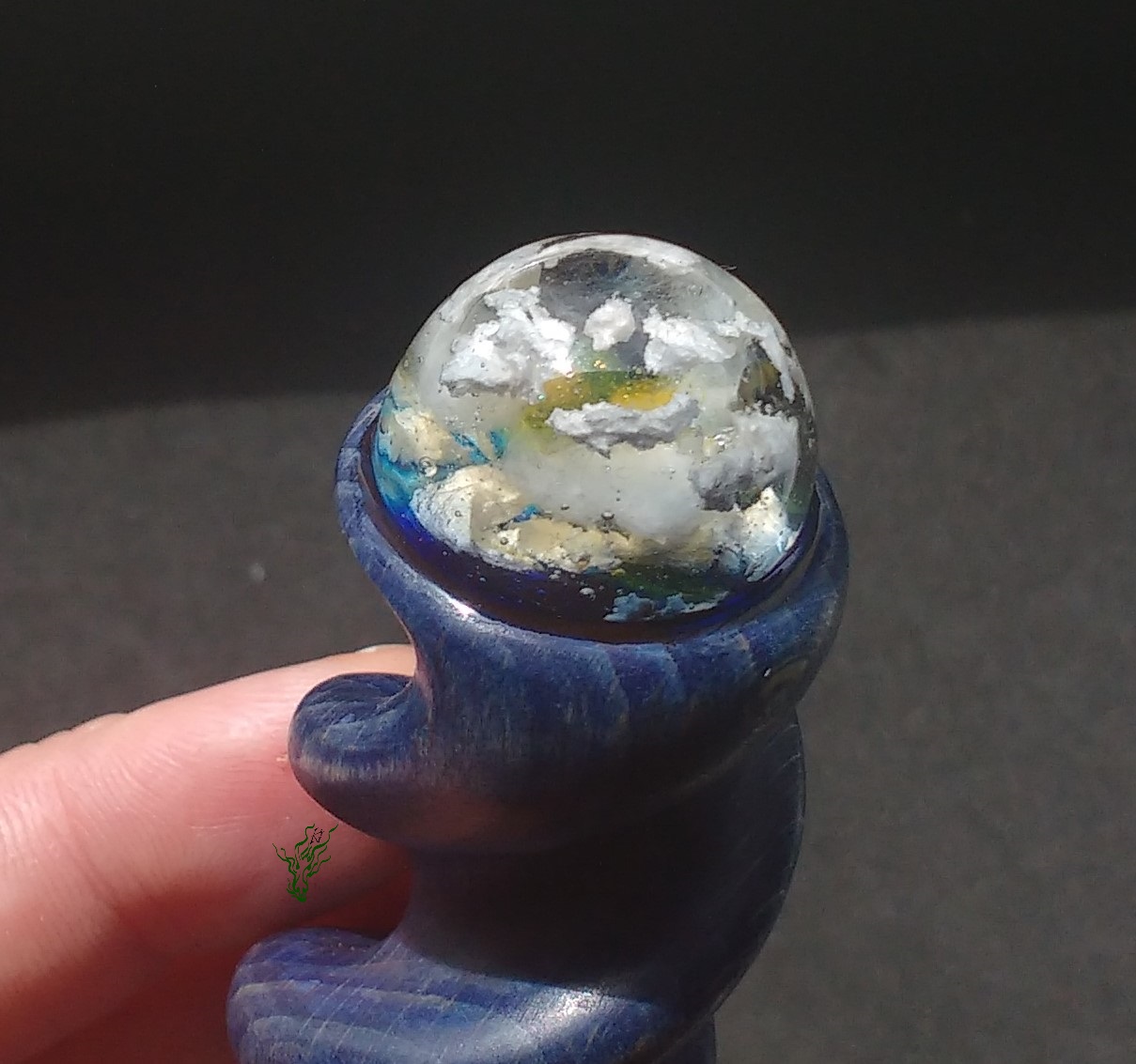 Diese Form habe ich vor Jahren als Volumenspirale  erfunden:  dreht  sich  entspannt in dein Haar &  ermöglicht  fluffige Frisuren.  Der Topper ist ein kleines Himmelsgewölbe mit  blauem Himmel &  Wolken.