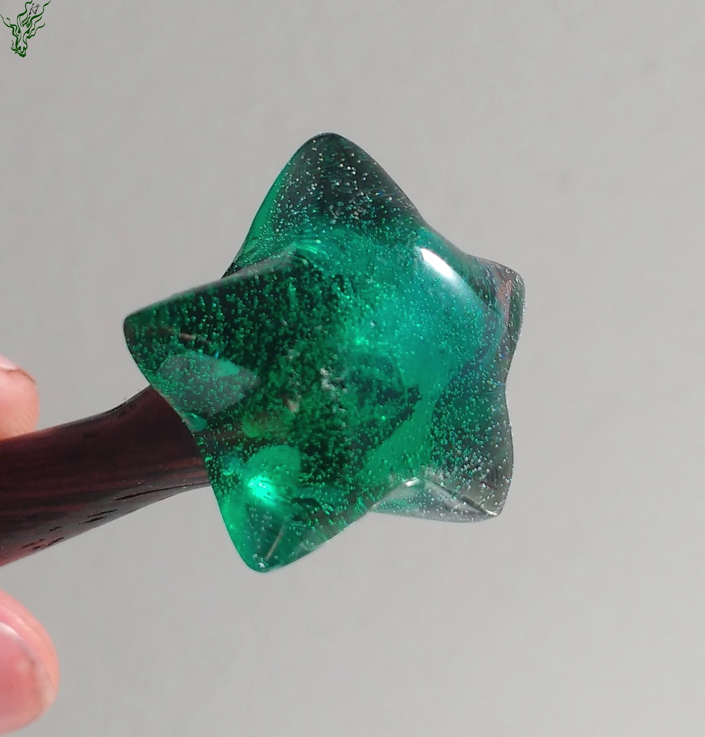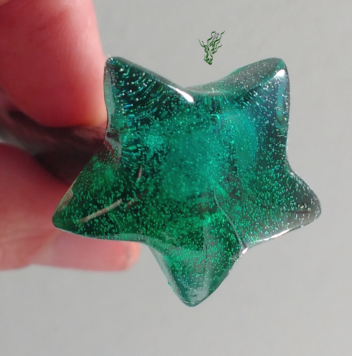Doch, ein grüner kleiner Stern mit Blubberbläschen hat uns noch gefehlt! Kühl grüner, smaragdiger Stern mit ein bisschen blauem Geflimmer und geheimnisvollem Innenleben.