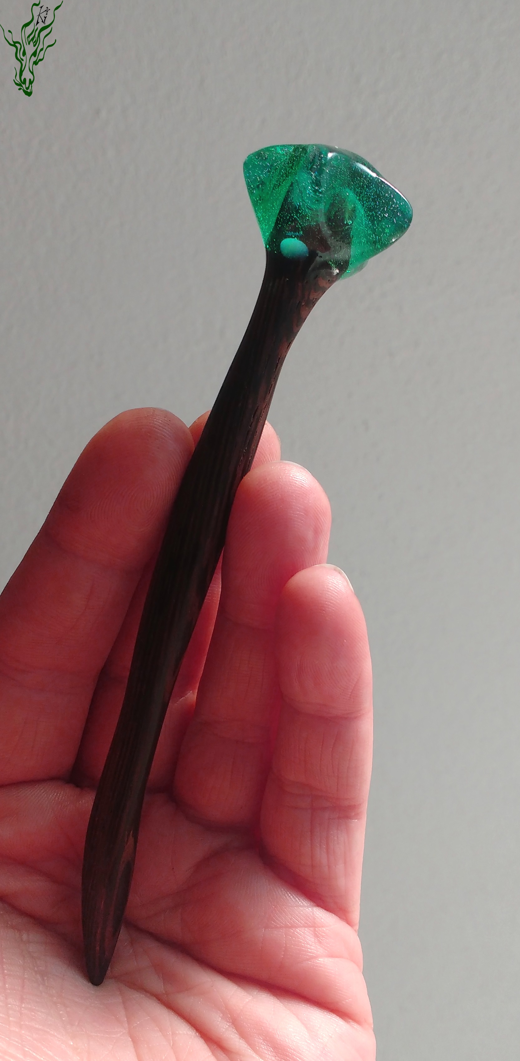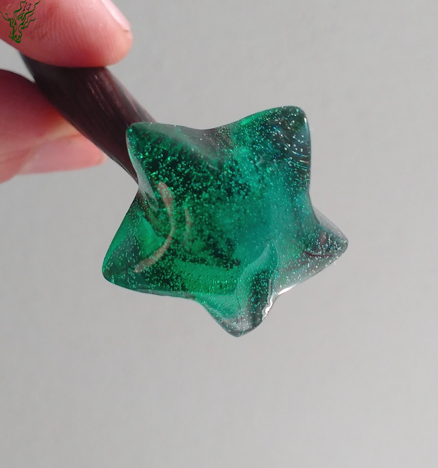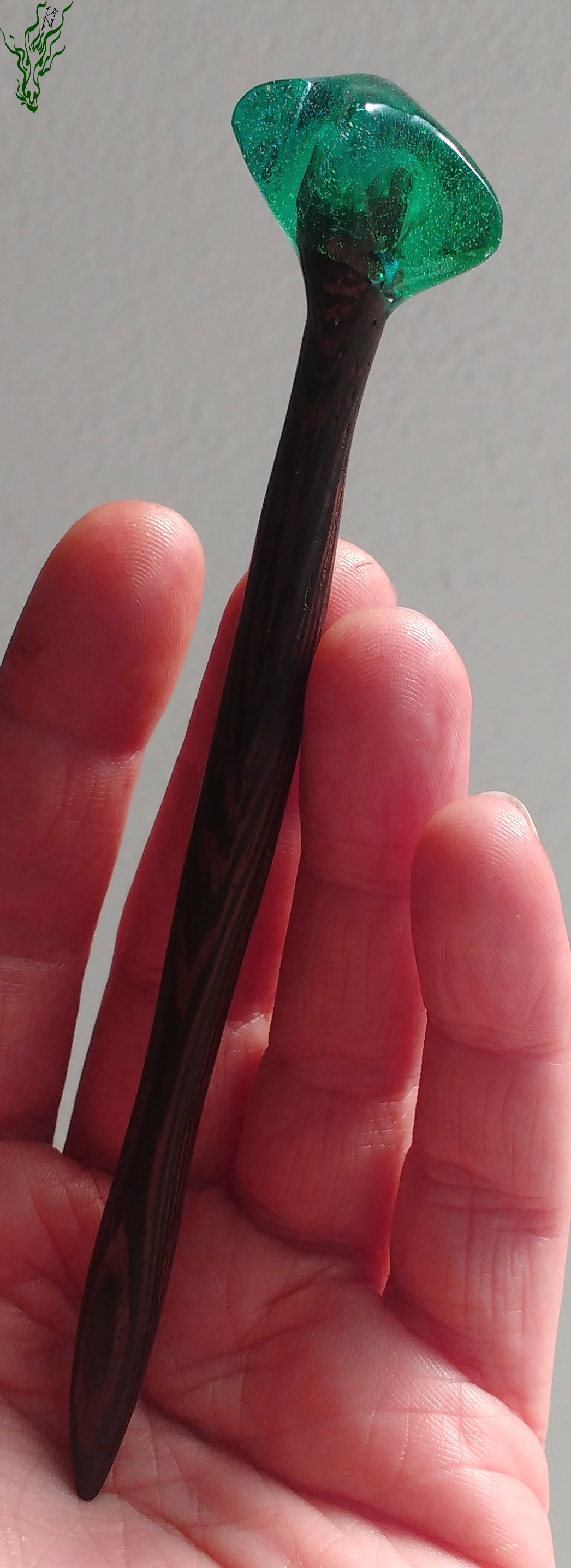 Dieses federleichte Gletscherstäbchen präsentiert glänzendes Resin mit magischer Vielfalt auf aufregendem, mehrfarbig gemustertem WengeHolz. Mit kleinem Nöpsie für sicheren Halt. Der stört nicht beim Reinschieben, verhindert aber unkontrolliertes Rausrutschen. Der Haarstab ist so konzipiert, dass sich der Stern an deinen Dutt anfügt & perfekt ausbalanciert ist.