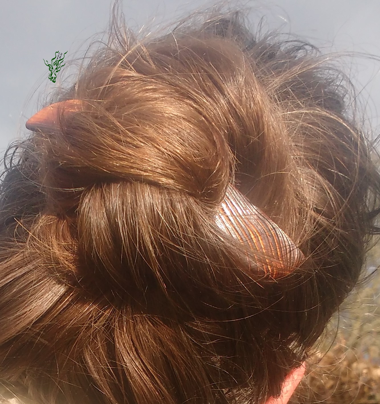 Du siehst, wie sich dieser Haarstab durch seine Kopfformbiegung in deine Frisur schmiegt. Guter Anfänger Haarschmuck . Seidenglatt & superleicht. Wie jeder meiner Holz Haarschmücker mit meiner natürlichen Öl- Wachs- Mischung vor Feuchtigkeit geschützt.