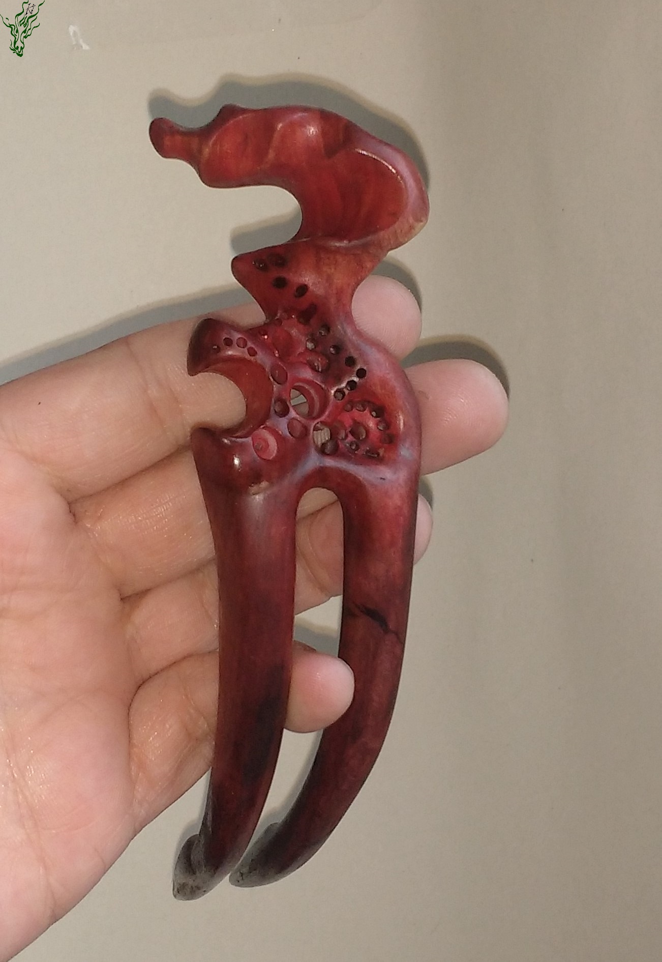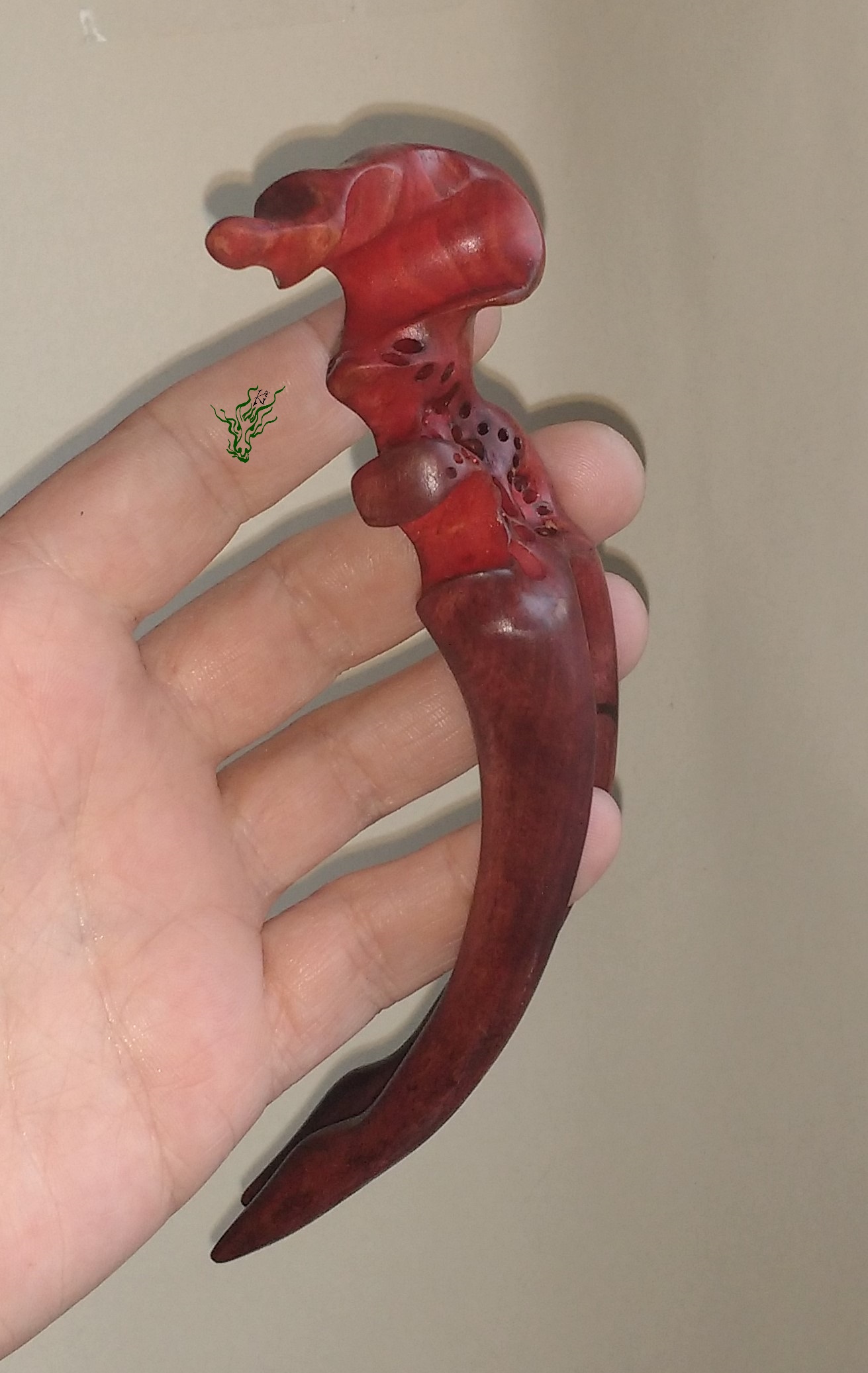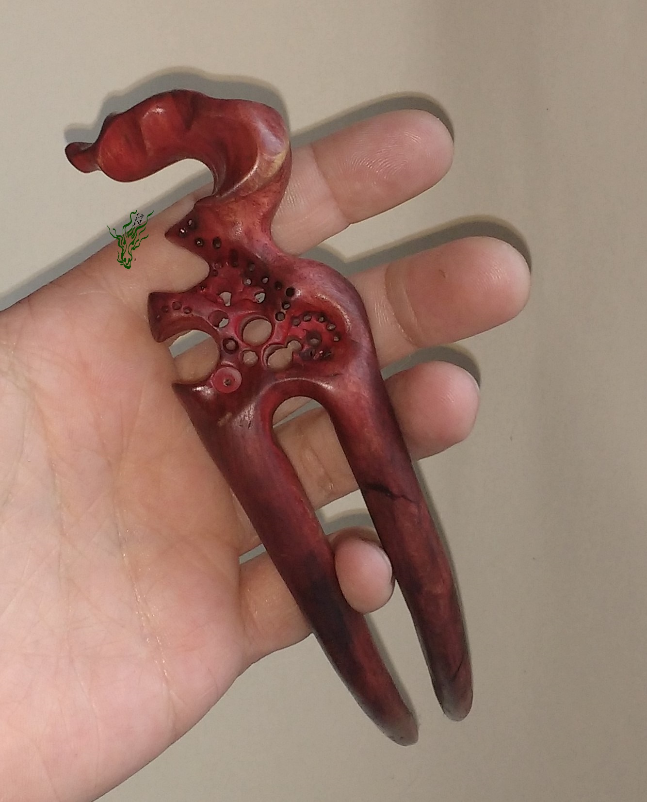 Diese hand geschnitzte Haarforke aus Olivenholz hat einen auffallenden, anspruchsvollen Topper und ist mit roten & lila Pigmenten behandelt. Insgesamgt ist sie zwar lang – die stark gebogene Form schmiegt sich jedoch eng an deinen Kopf – durch eine deutliche Kopfformrundung für große Bequemlichkeit und ein stimmiges Gesamtbild. Wie immer schütze ich das Holz durch eine Öl- Wachsmischung gegen Feuchtigkeit.