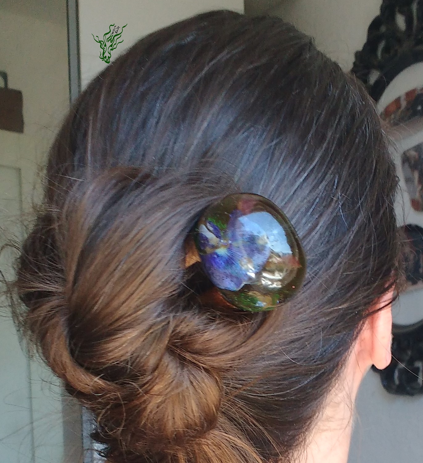 Ich möchte dein Augenmerk auf die elegant geschwungenen Zinken lenken – wie die Beine barocker Möbel sehen sie aus. Die Form schmiegt sich an deinen Kopf – durch die starke Kopfform- Rundung für optimale Bequemlichkeit & eine attraktive Ansicht auch der anderen Seite der Haarforke. Und macht schön gerundete Dutties. Die Nöpsies an den Zinken geben sicheren Halt.