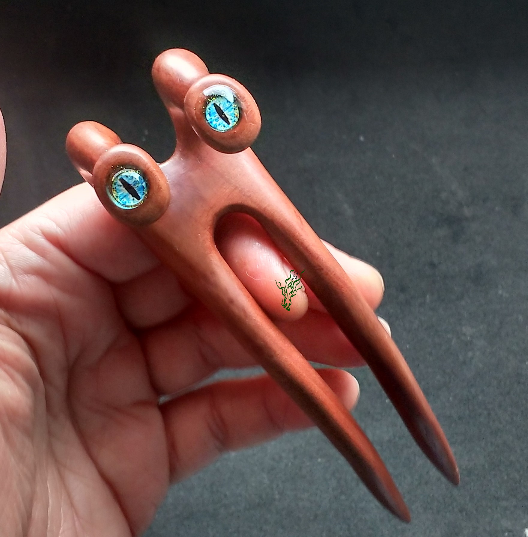 Preview *Gnihi!* geschnitzte Haarforke mit Augen