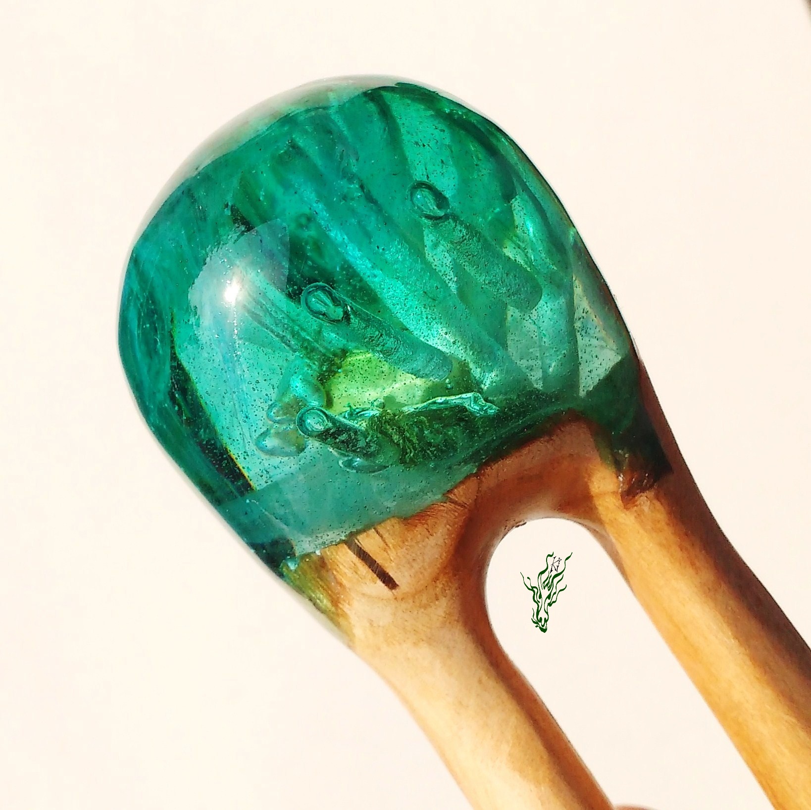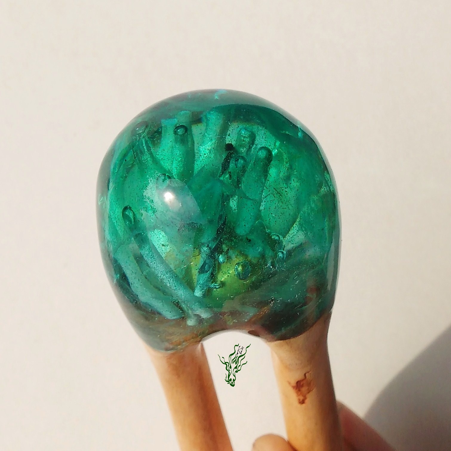 Ganz genauso ist *Geologischer Krimi* entstanden. ^^ Das Schauspiel findet unter einer grün- türkisen Kuppel statt. Gehalten von wunderschön gemasertem & seidig poliertem Kirschholz.