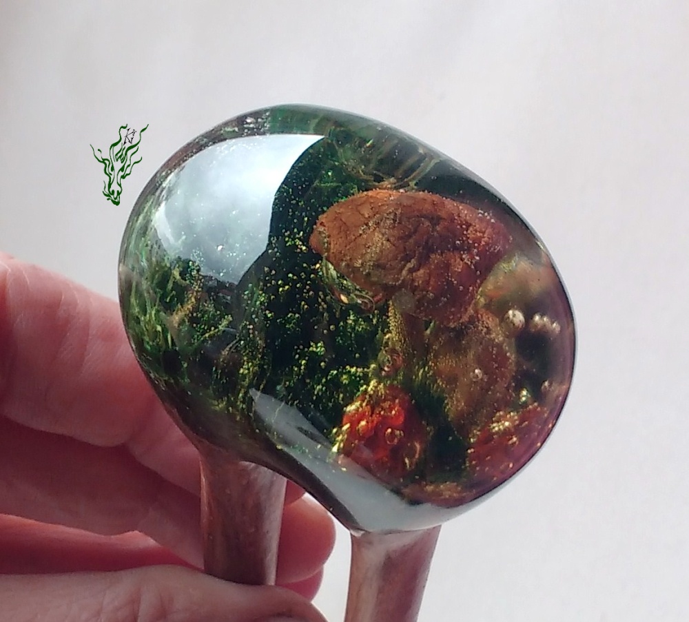 Jadedrache Haarschmuck gletscherforke grün gold Eigentlich ist alles wie immer. Und doch liegt ein goldenes Leuchten in der Luft. Denn genau in diesem Augenblick wird hinter dem Hügel im Kreise seiner Familie ein kleiner Pilz geboren – und die Welt vergoldet.