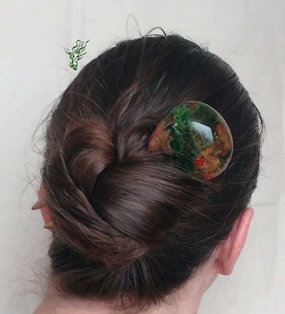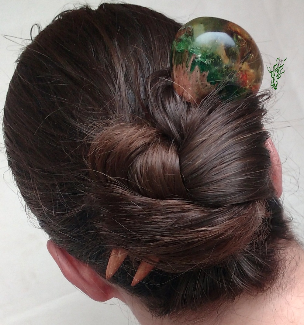 jadedrache haarschmuck gletscherforke grün goldEine Haarforke oder Haargabel ist ein klassischer Haarschmuck. Damit kannst du deine langen Haare bequem & einfach hochstecken. Das Video von meinem einfachsten Dutt habe ich euch schon einmal hier  (ganz unten auf der Seite) gezeigt.
