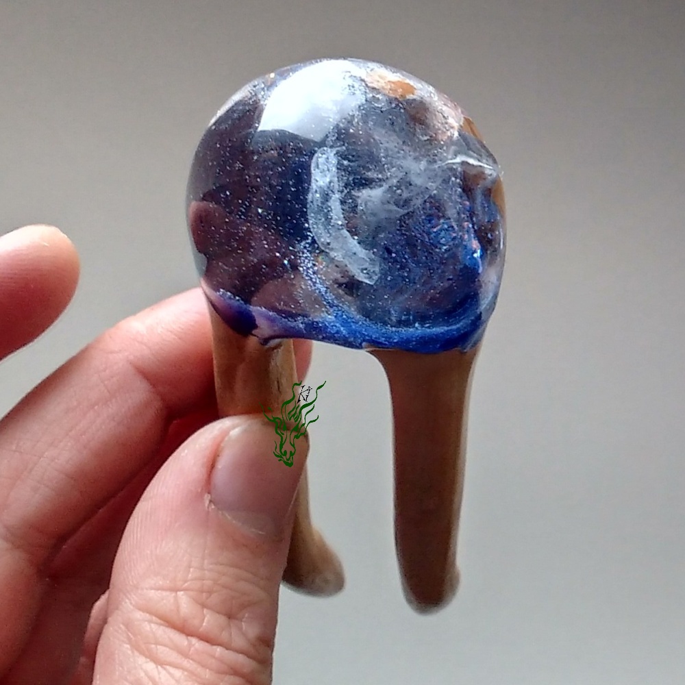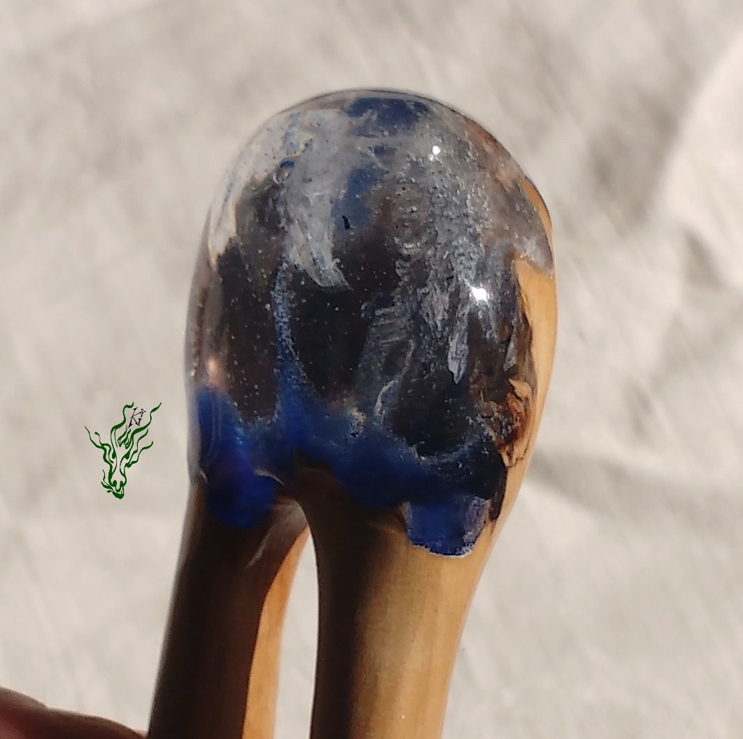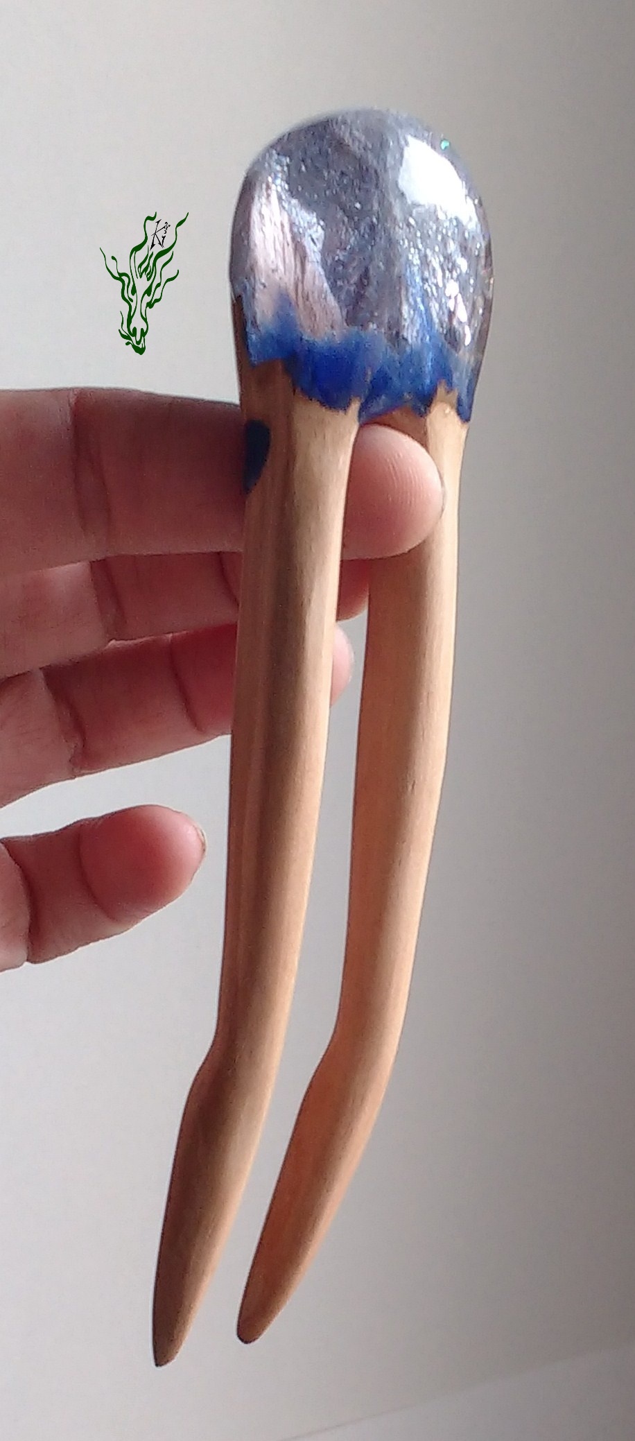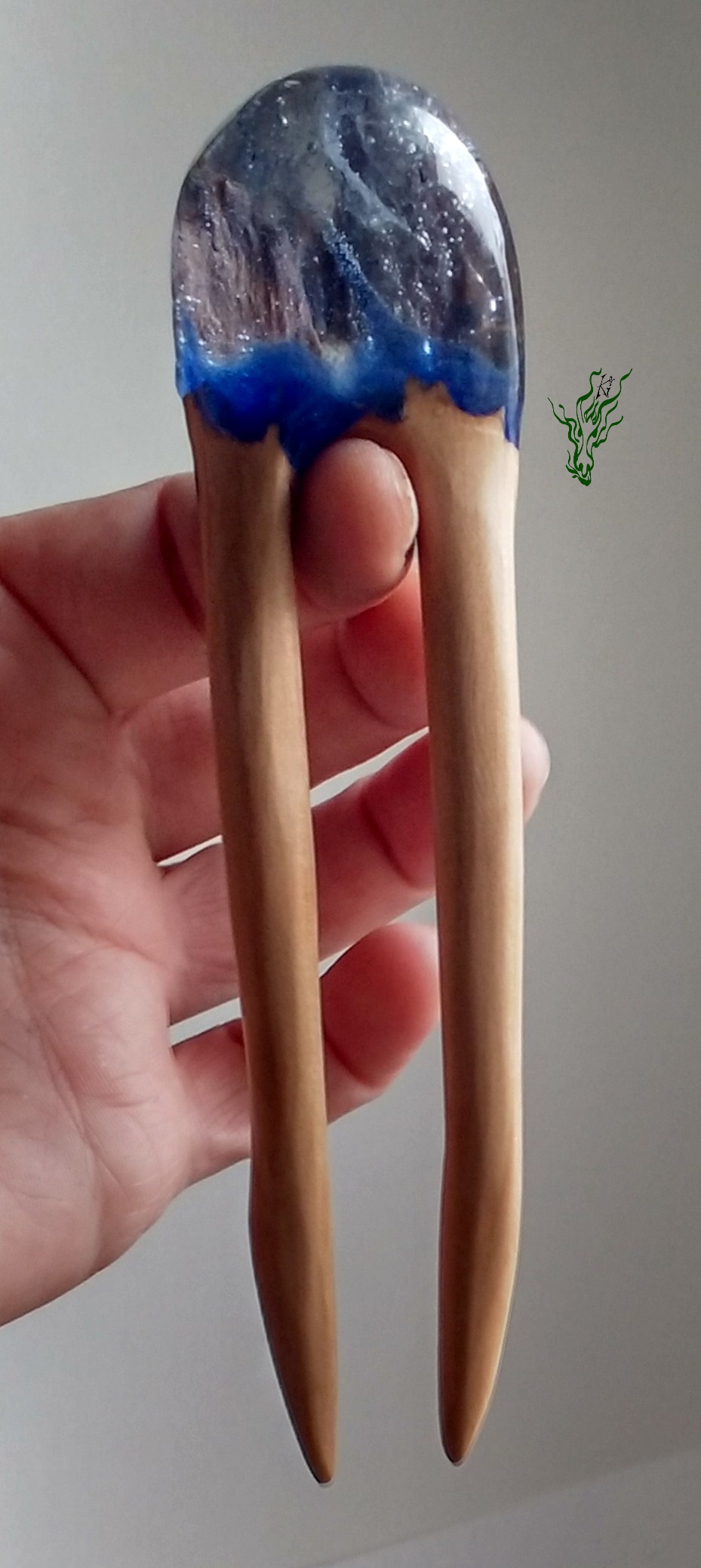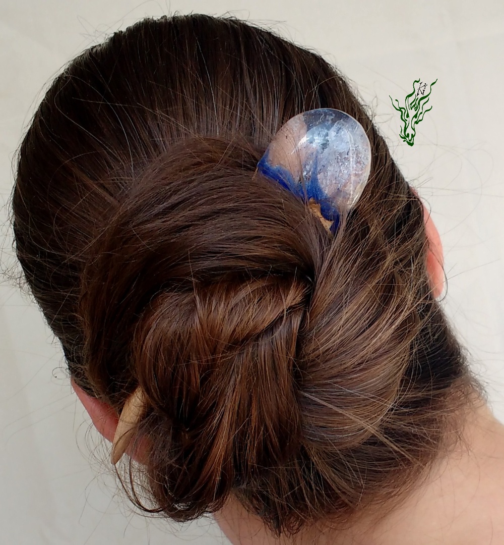 Natürlich hat diese klare Gletscherforke auch wieder eine Kopfwölbung, bequemen Zinkenabstand & Nöpsies für den optimalen Halt. Die klare Kuppel sitzt auf einer seidenglatten Haarforke aus gestocktem Apfelholz.