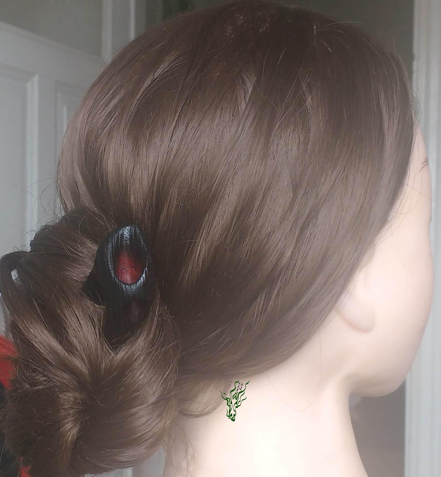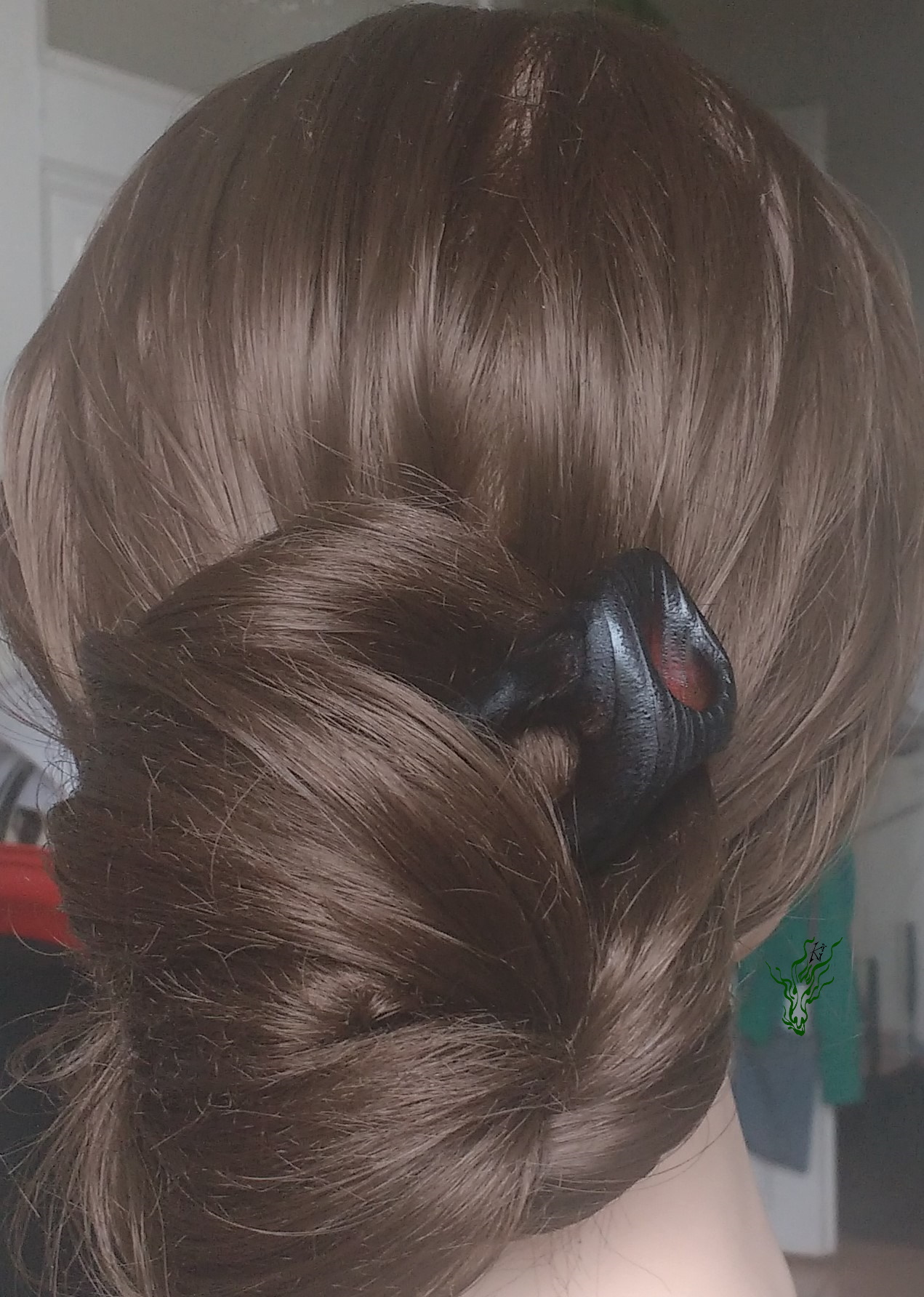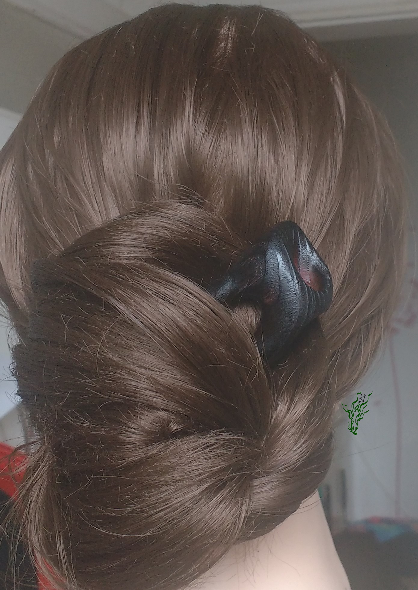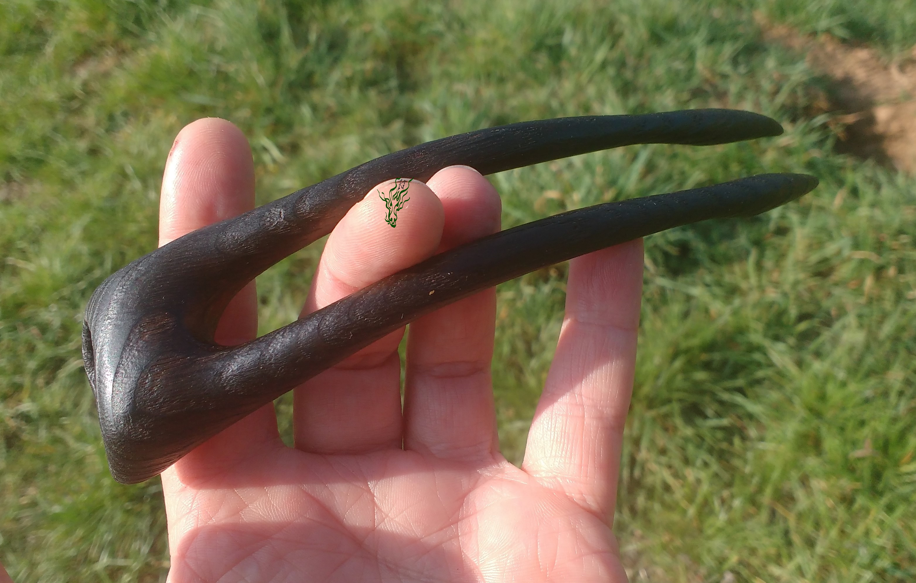 Du siehst, wie sich diese Haarforke durch ihre starke Kopfformbiegung in deine Frisur schmiegt. Für schön runde Dutties. Die Forke hat Nöpsies für den perfekten Halt. Aber vielleicht nicht gerade für dicke, undurchdríngliche Matten oder wenn du keine Erfahrung mit Holzhaarschmuck hast, denn die hat zarte Fesseln, es sollte also beim Stecken nicht allzu viel Druck nötig sein . Wie jeder meiner Holz Haarschmücker mit meiner Öl- Wachs- Mischung vor Feuchtigkeit geschützt.