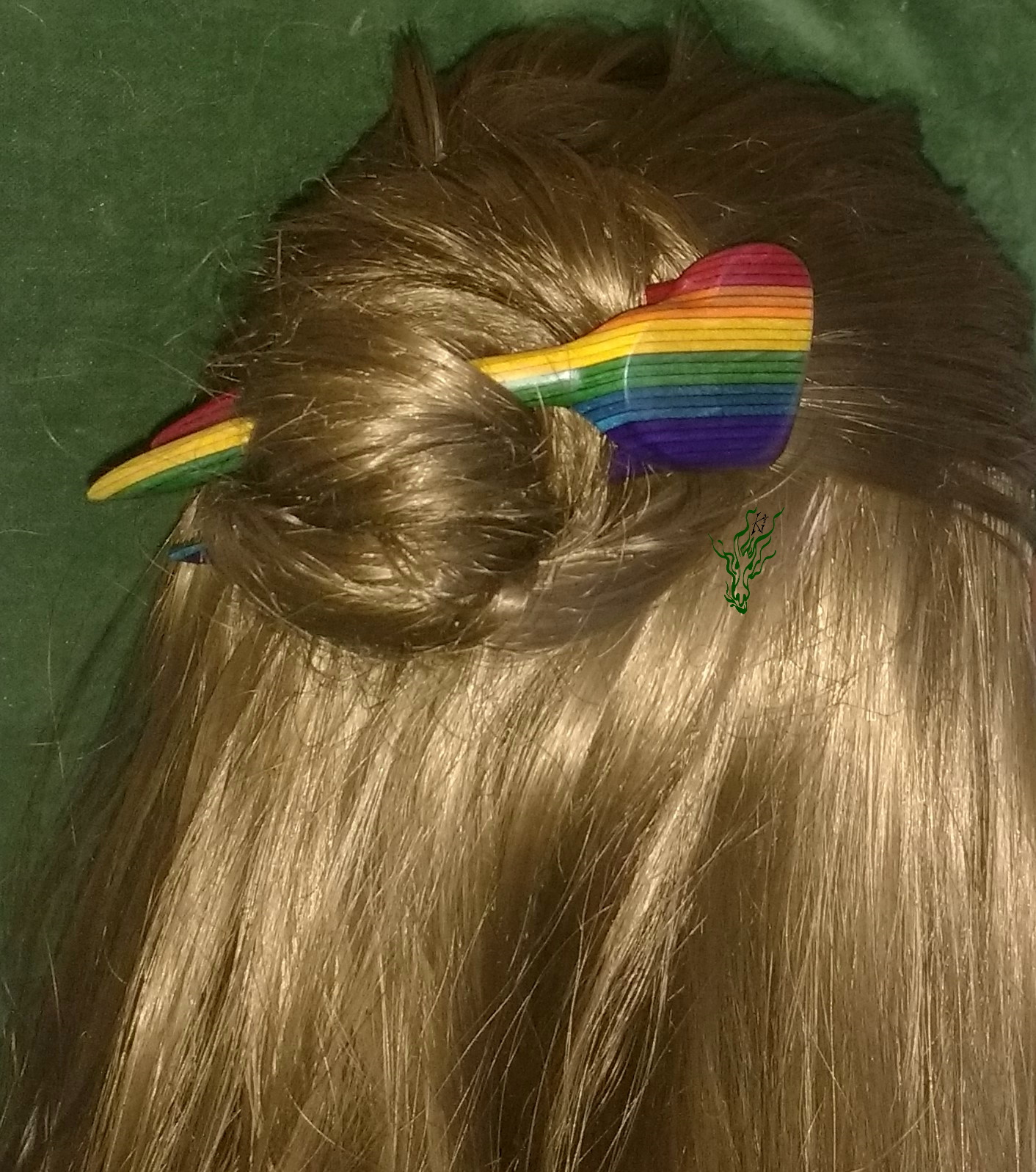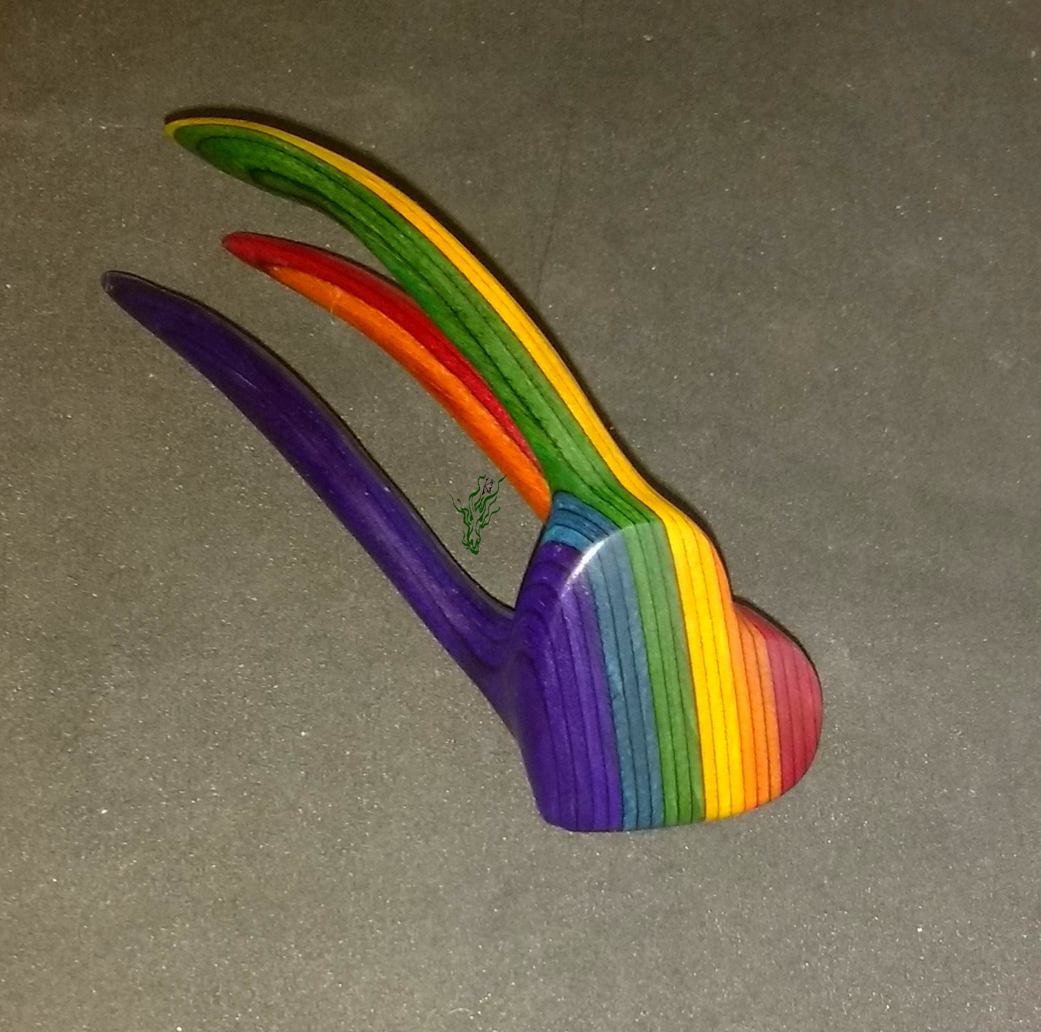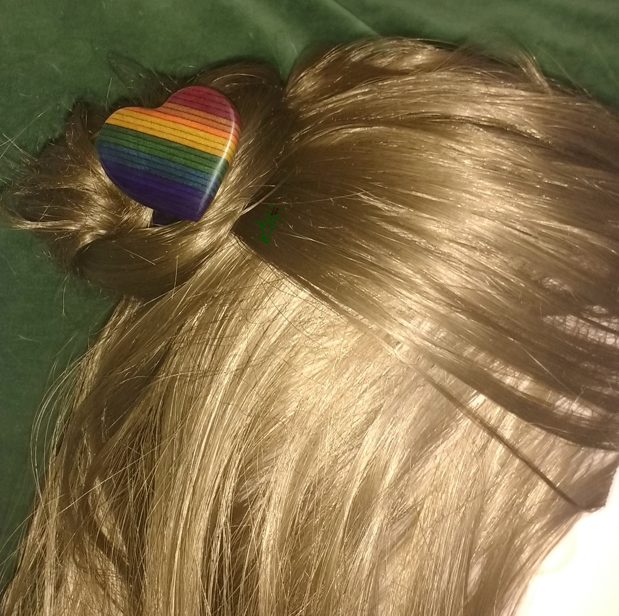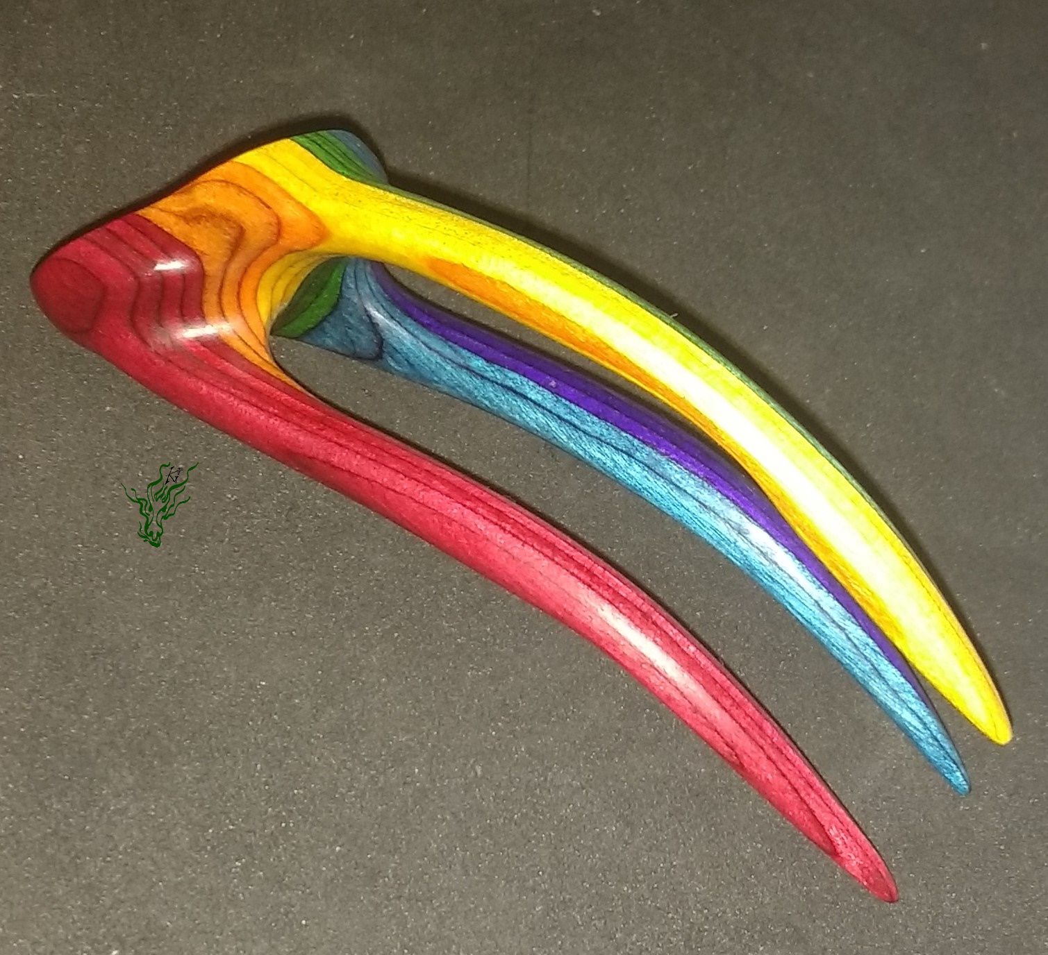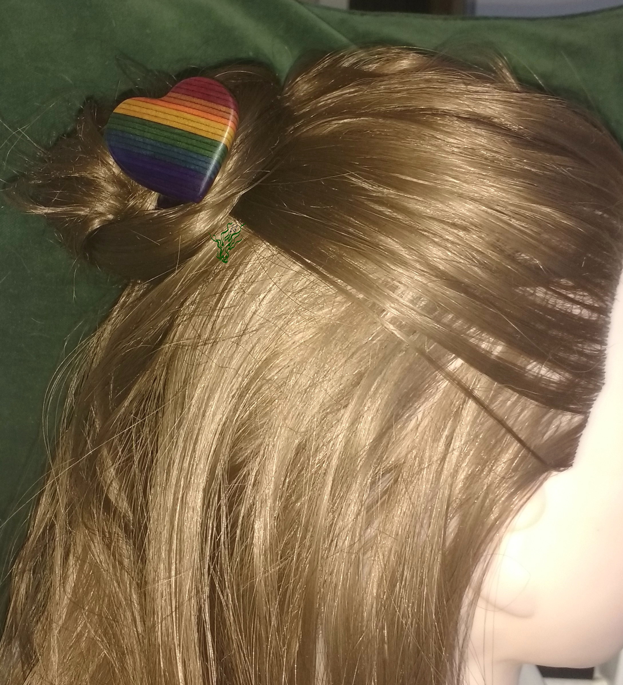 Zarte 3D HaarForke – für feines Haar. Ich habe ja selbst glattes Feenhaar & schwöre auf die Zauberkraft von 3 D Forken: bei mir bringen sie Volumen in den Dutt & halten auch fluffiges Gewurschtel. Ganz Herz-ig aus meinem selbst designten Regenbogen- Holz.