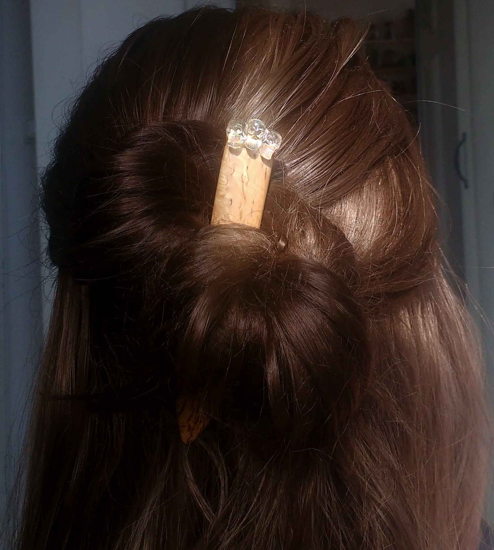 Du siehst, wie sich dieser breite Haarstab durch seine Kopfformbiegung in deine Frisur schmiegt. Guter Anfänger Haarschmuck . Seidenglatt & superleicht. Wie jeder meiner Holz Haarschmücker mit meiner natürlichen Öl- Wachs- Mischung vor Feuchtigkeit geschützt.