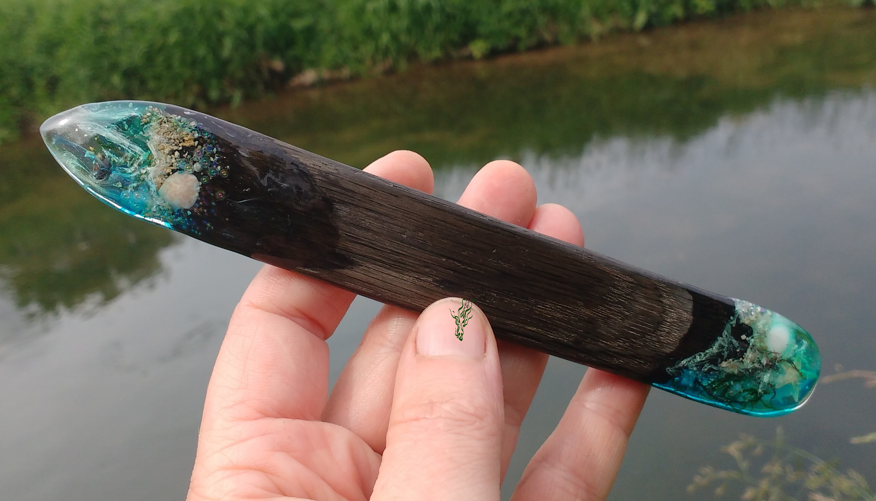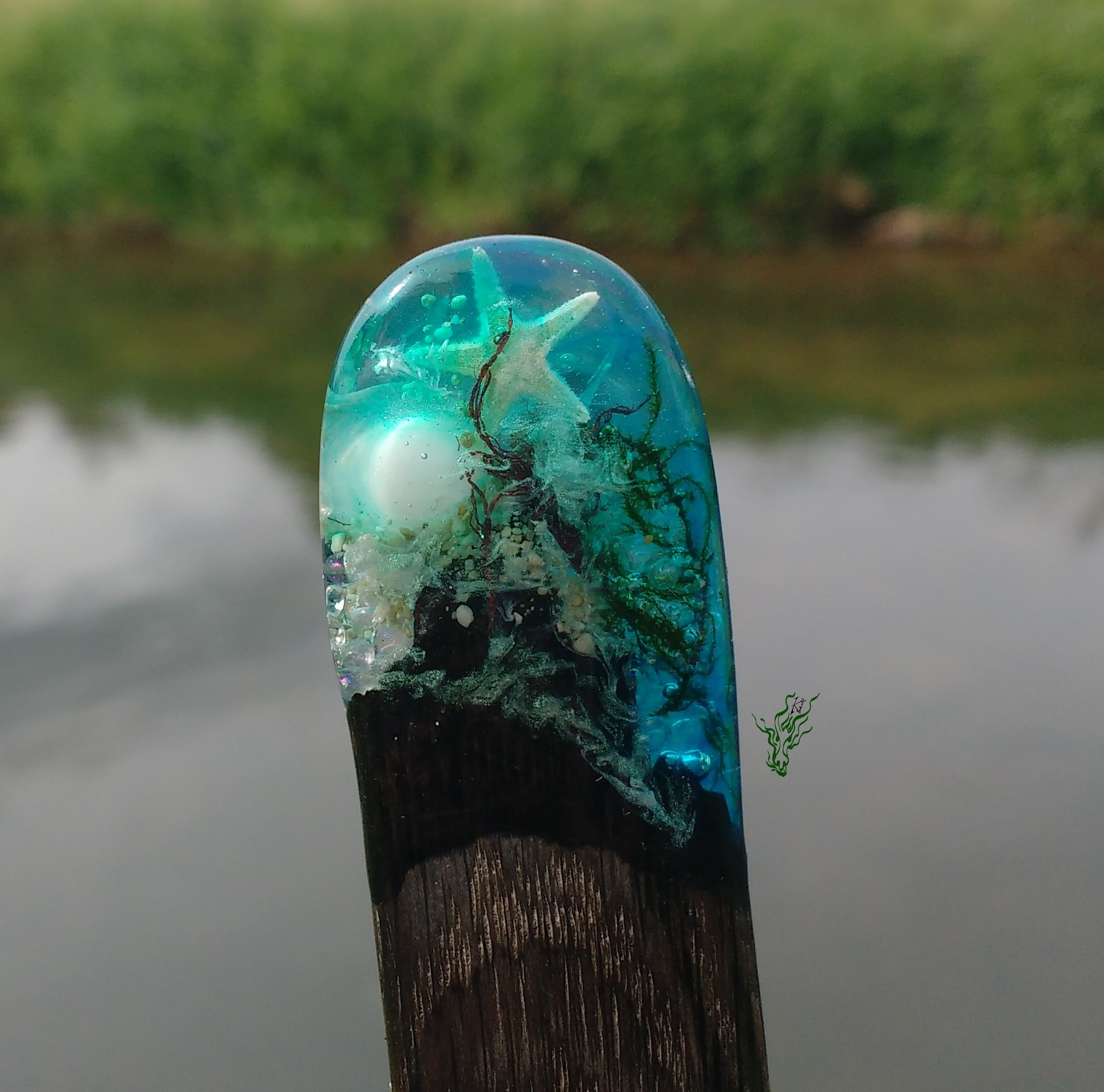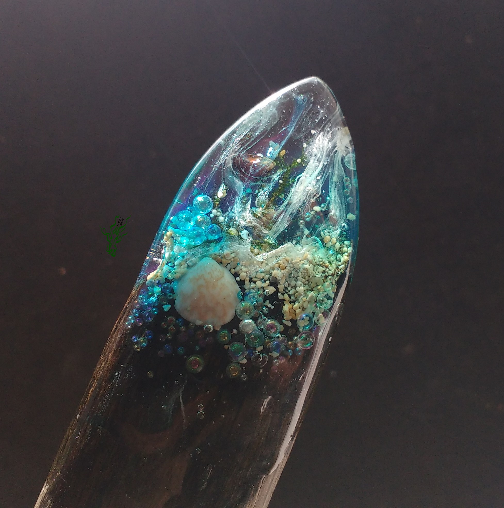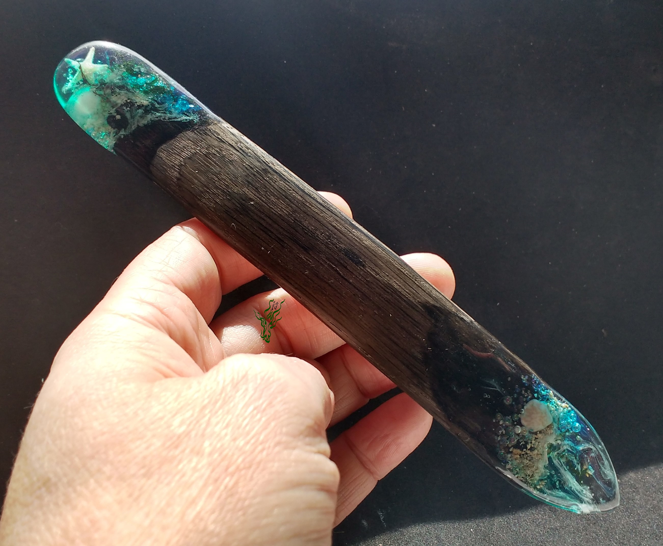 Breiter Gletscherstab , so bequem aus Jahrtausende altem MooreicheHolz. Kleine Meereswelten mit Muscheln, Algen, echtem Seesand, Seestern, Blubberblasen & allem, was das Meer zu bieten hat.