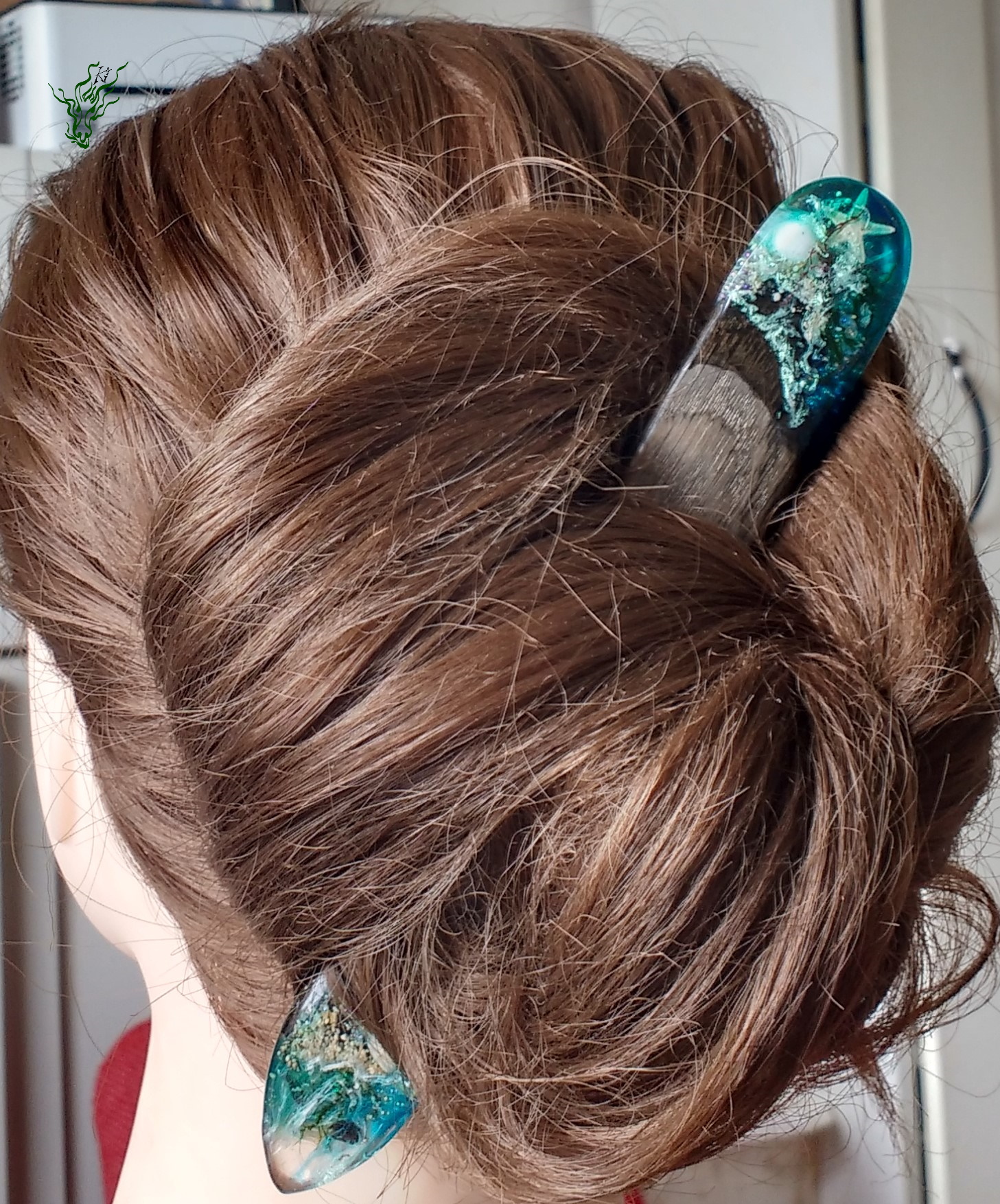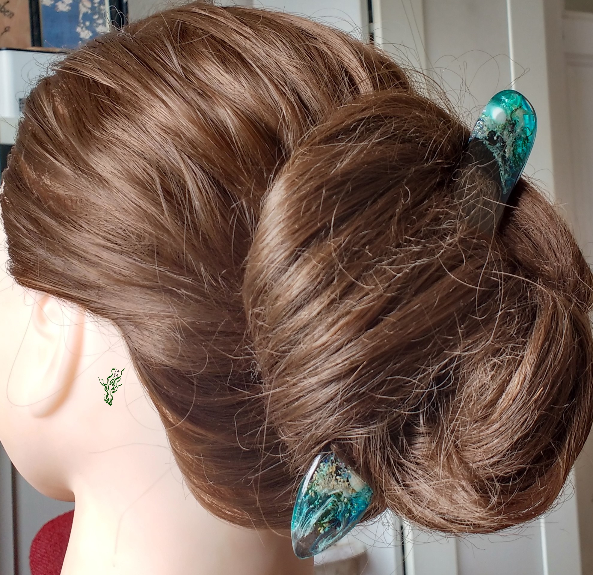 Dieser Haarschmuck wurde hier im Preview direkt adoptiert – viele andere Haarstäbe findest du in meinem EtsyShop
