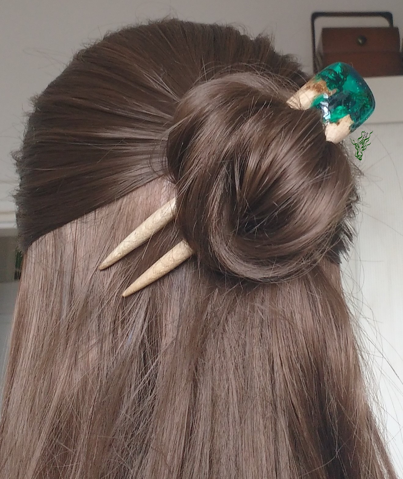 Eine Haarforke oder Haargabel ist ein klassischer Haarschmuck. Damit kannst du deine langen Haare hochstecken. Das Video von meinem einfachsten Dutt habe ich schon einmal hier gezeigt.