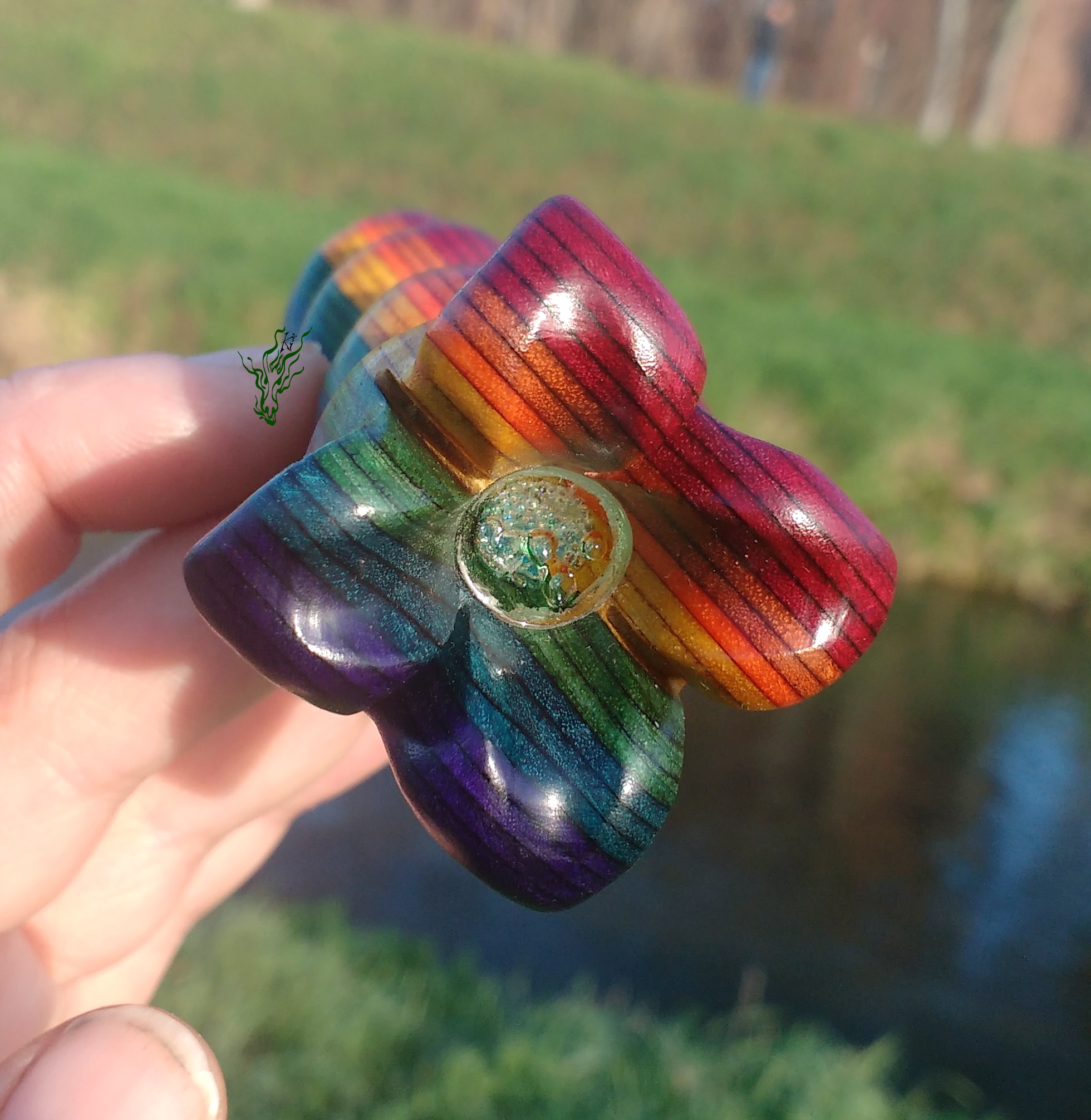 Hand geschnitzter Topper, der alle Farben zur Geltung bringt. Gefüllt mit Regenbogentränen, ich schwöre ^^ Vor Feuchtigkeit geschützt durch meine Wachs- Öl- Mischung & auf Hochglanz poliert.