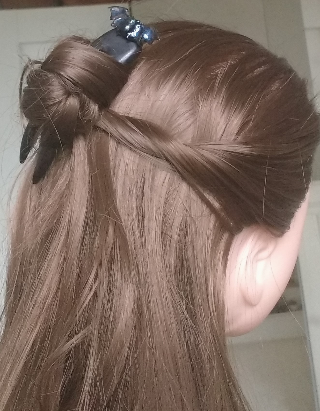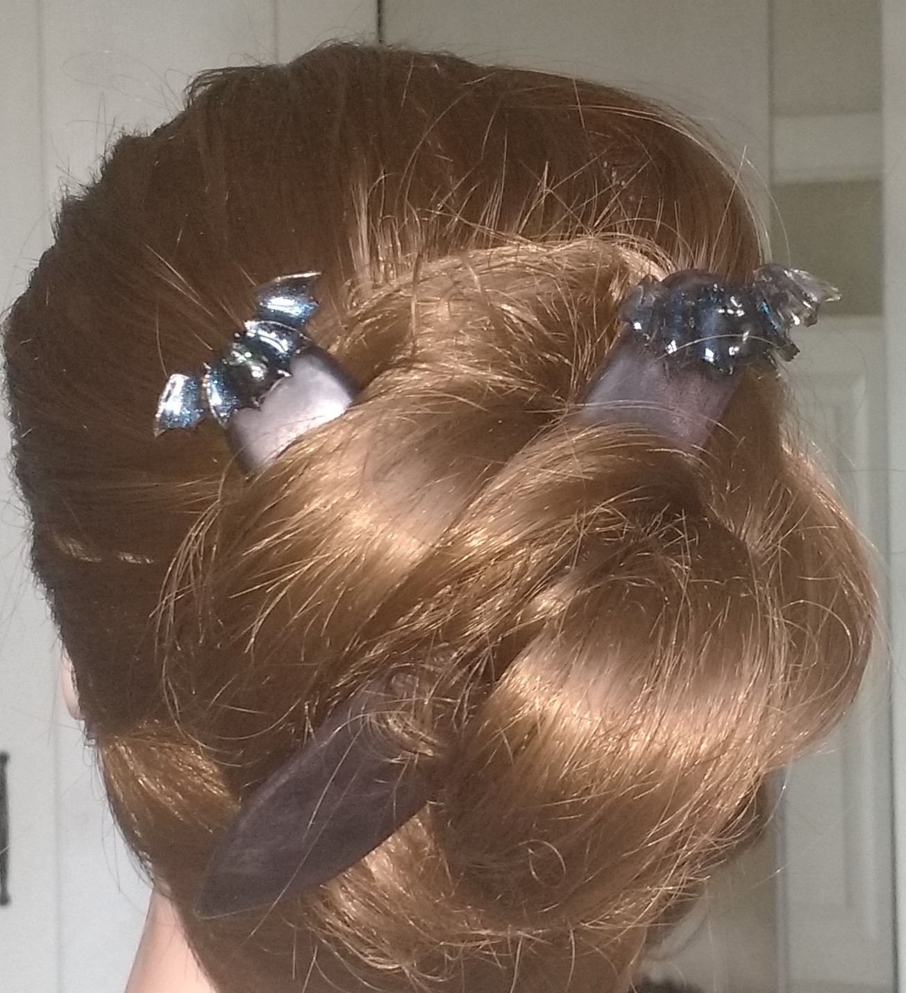Eine Haarforke oder Haargabel und Haarstäbe sind klassischer Haarschmuck. Damit kannst du deine langen Haare hochstecken. Das Video von meinem einfachsten Dutt habe ich schon einmal hier gezeigt.