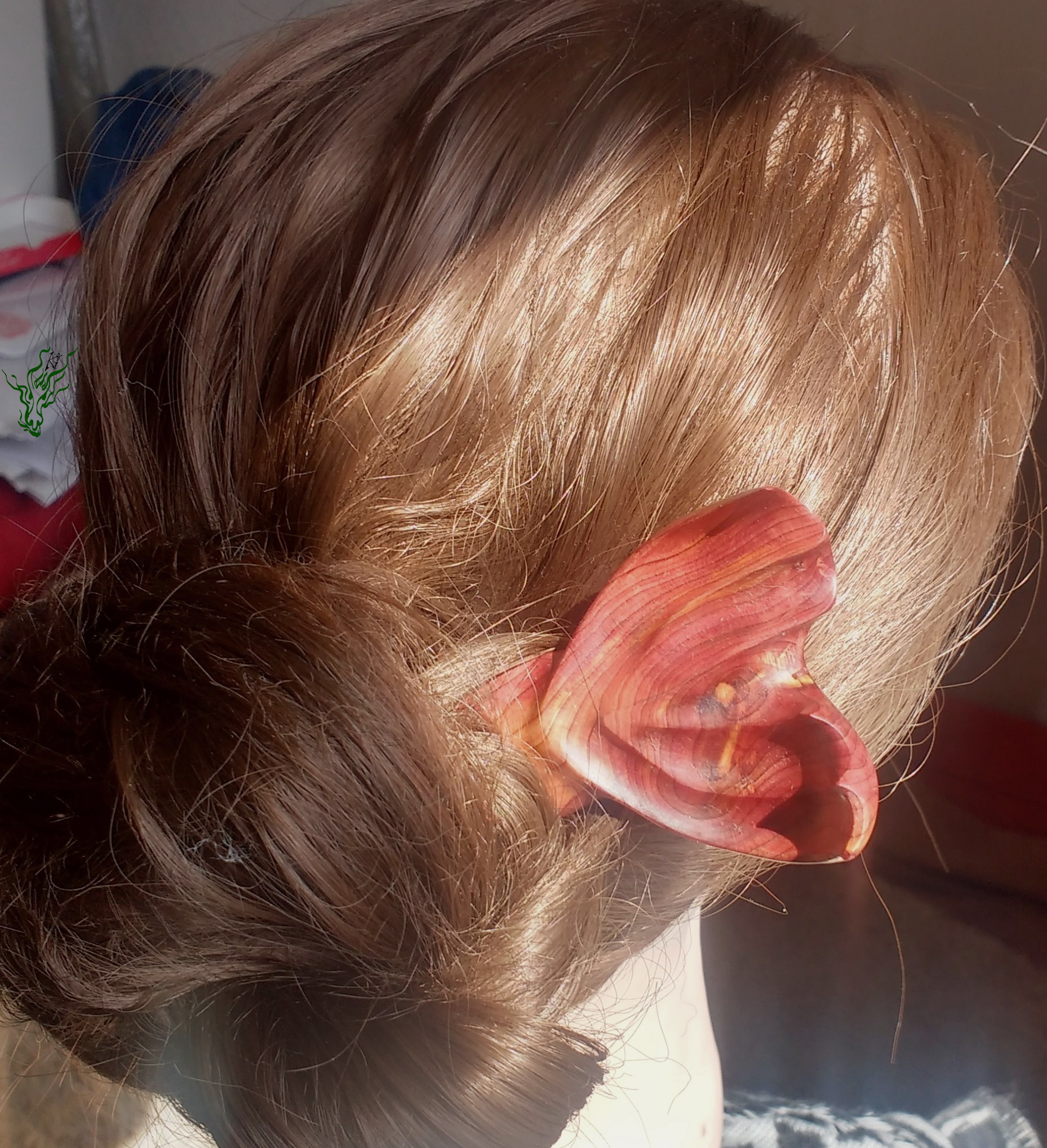 Detailliert geschnitzte Flosse als Topper bringt die Holzmaserung zur Geltung. Glatt poliert &  Seidenglanz. Die Form schmiegt sich an deinen Kopf – durch die Kopfform- Rundung für optimale Bequemlichkeit. Wie alle meine Holz Haarschmücker mit meiner Wachs- Öl- Mischung gegen Feuchtigkeit geschützt.