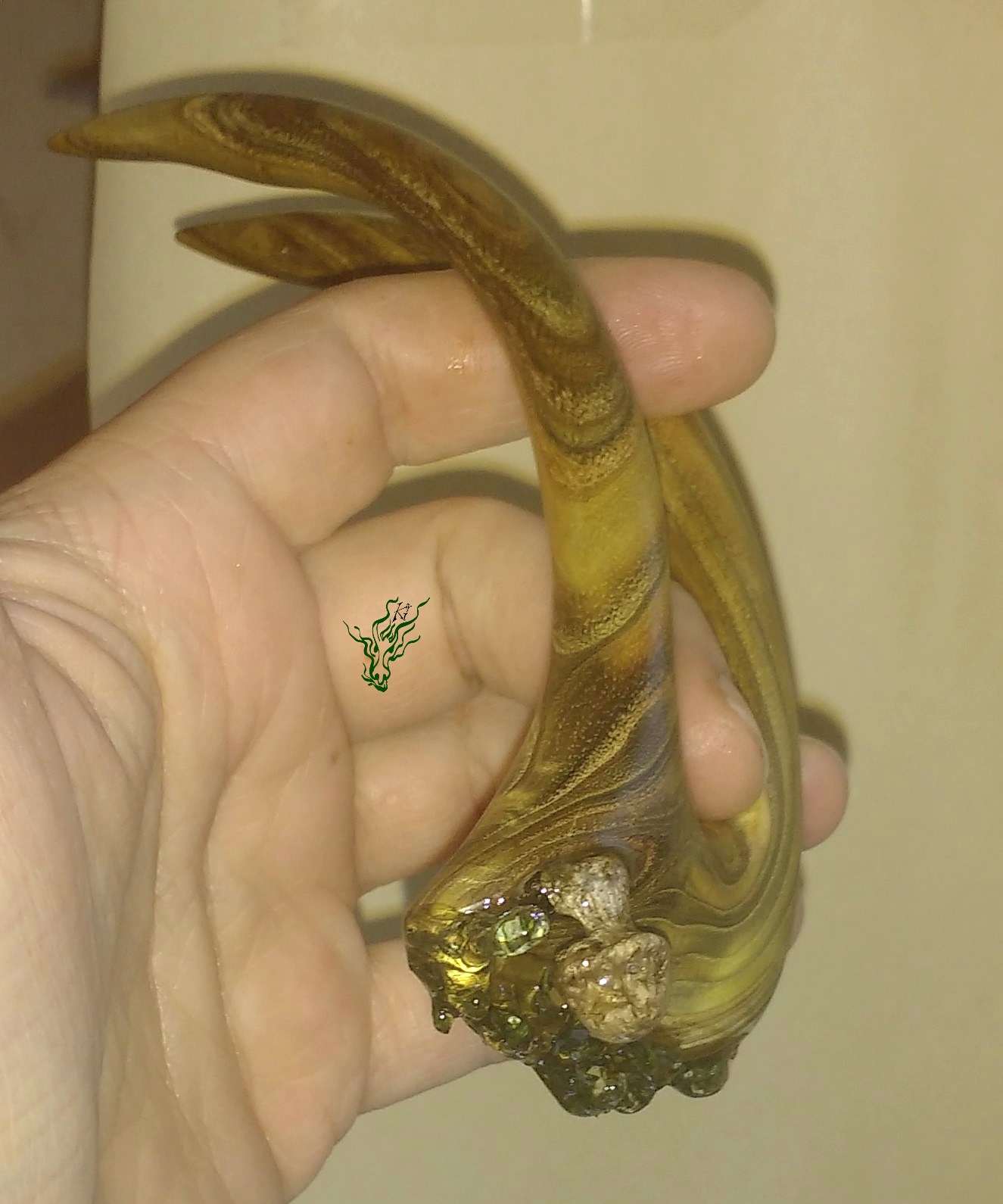 Die Haarforke ist  Hand geschnitzt zur bewährt-  bequemen Jadedrachen- Form:  stark  gebogen, um sich ideal an deine Kopfform  anzuschmiegen &  deinen Dutt schön rundlich zu machen. Hält  dadurch auch lockere Buns. Und die kleinen Nöpsies, für sicheren Halt & eine attraktive  „andere“ Seite.