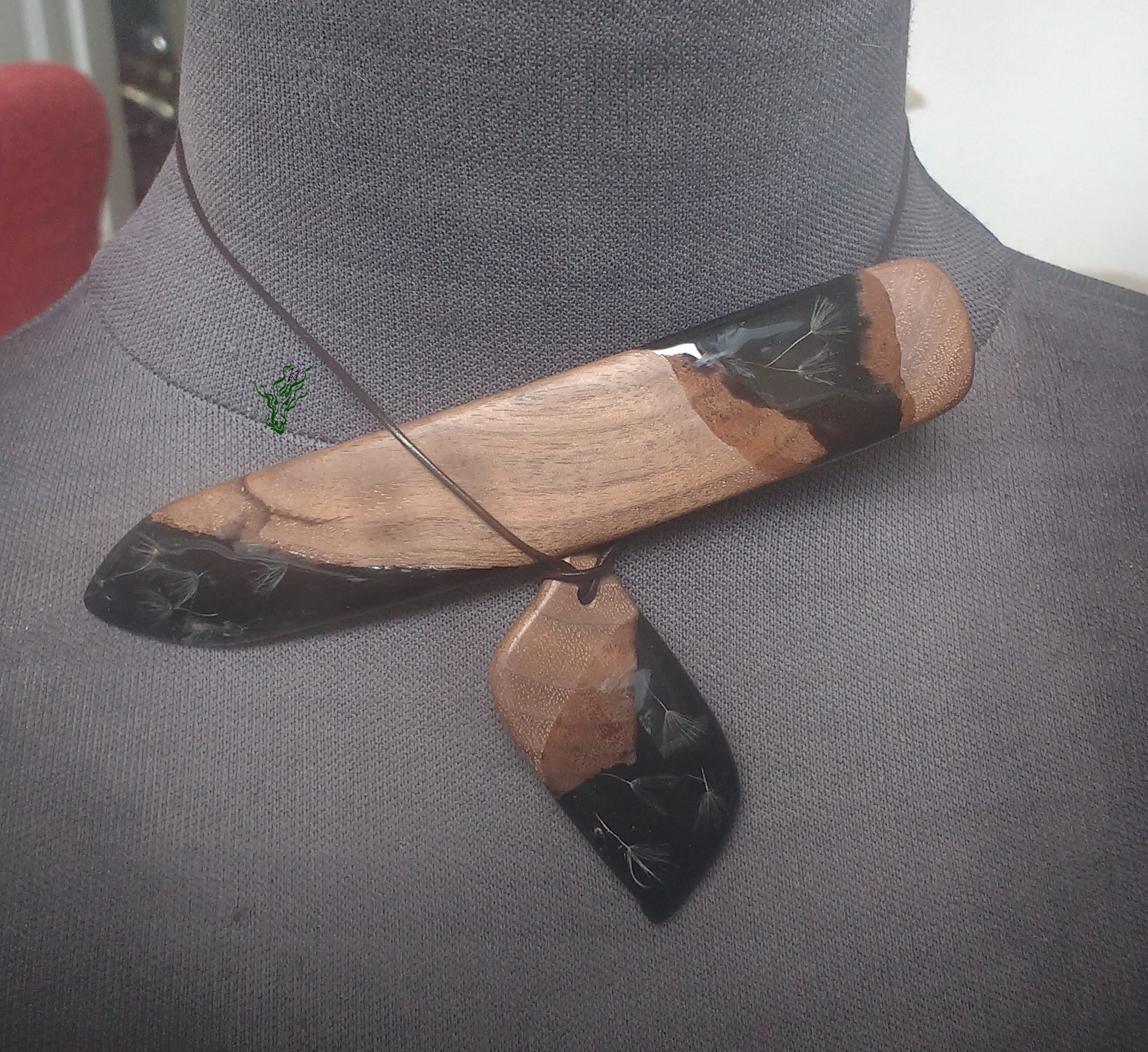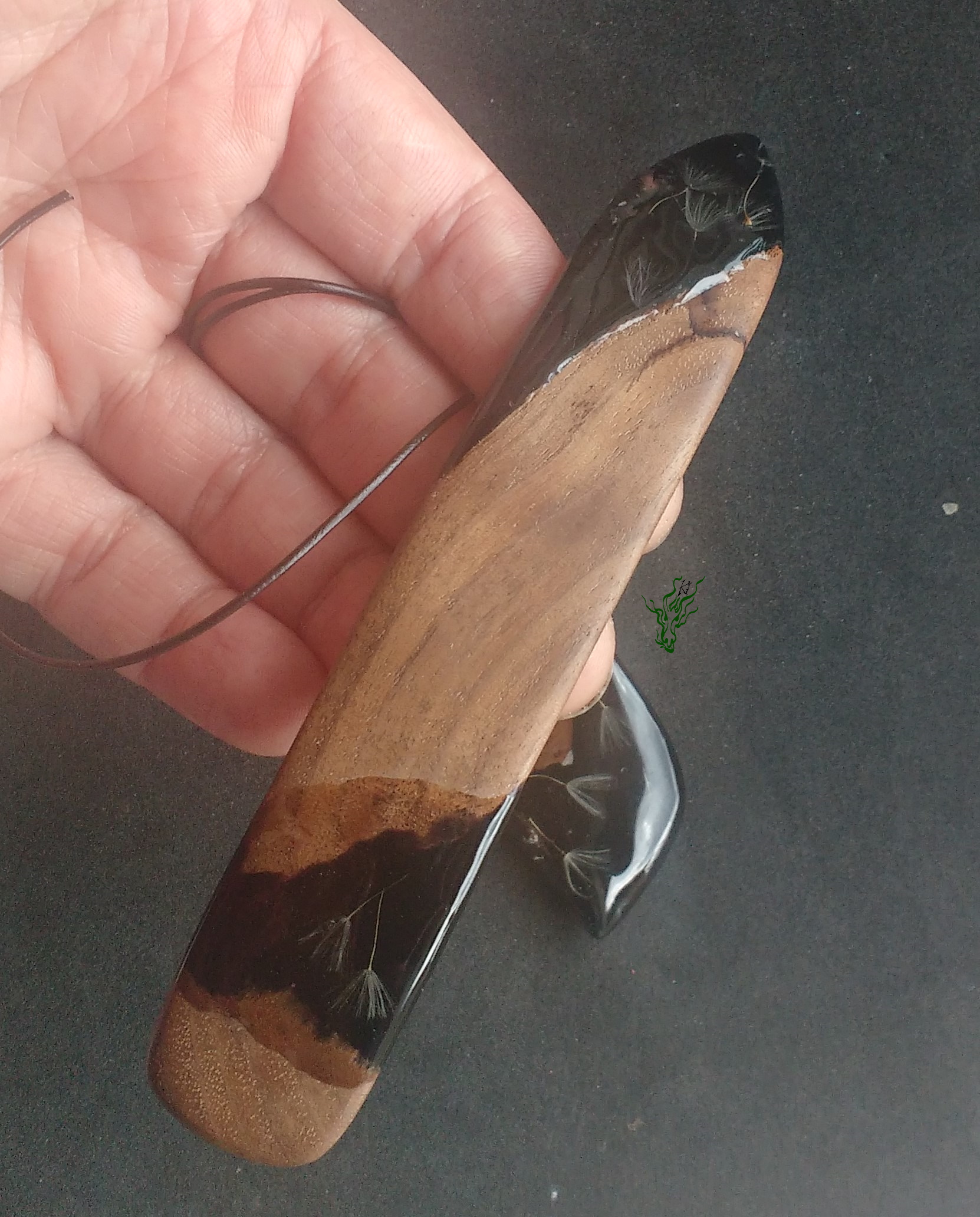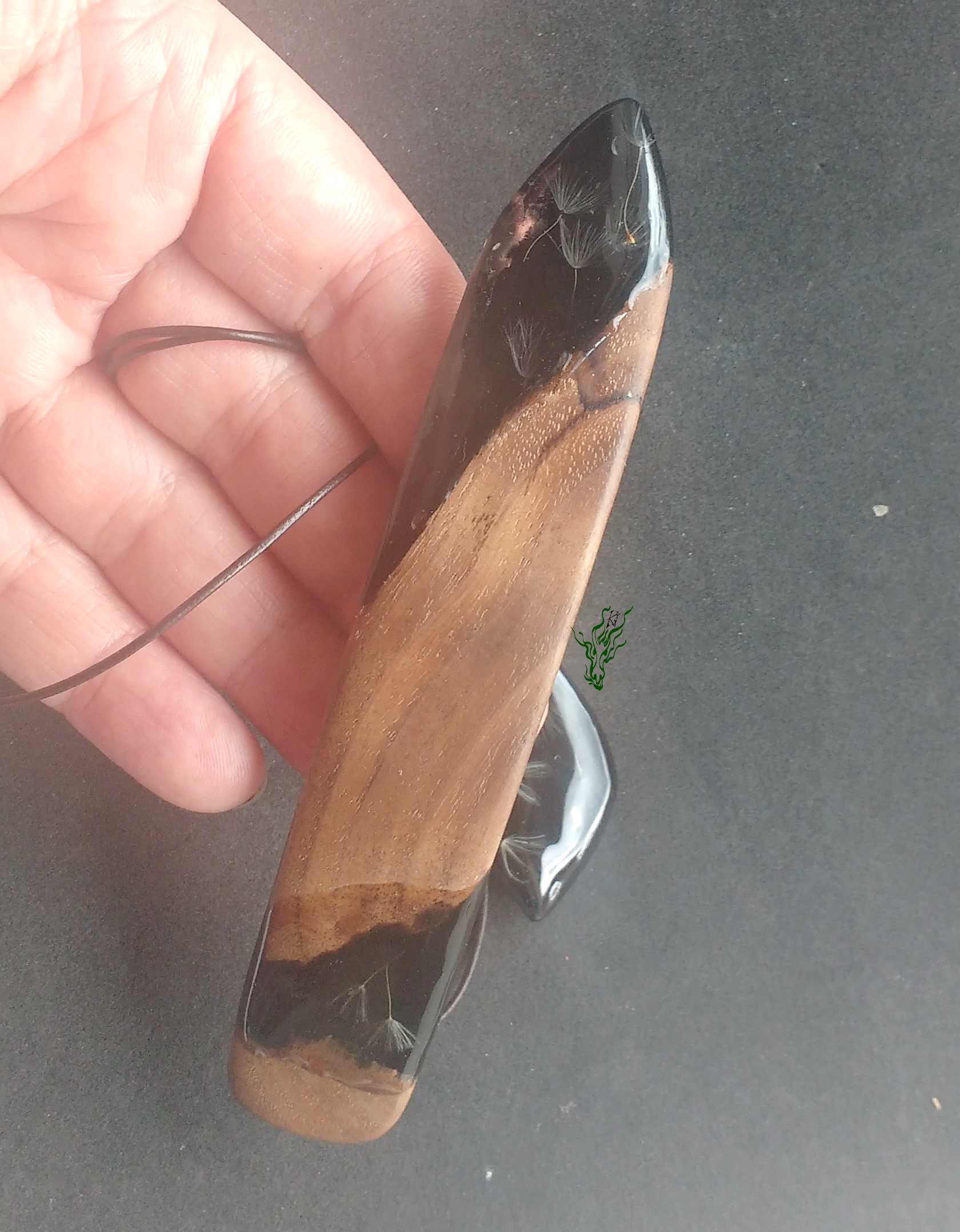 Breiter Gletscherstab , so bequem aus wunderschönem WalnussHolz.  Mit Pustenblume- Schirmchen & Geriesel in schwarzem Resin – für Schönheit auf beiden Seiten deines Dutts. Kommt mit passendem Anhänger aus den gleichen Materialien.