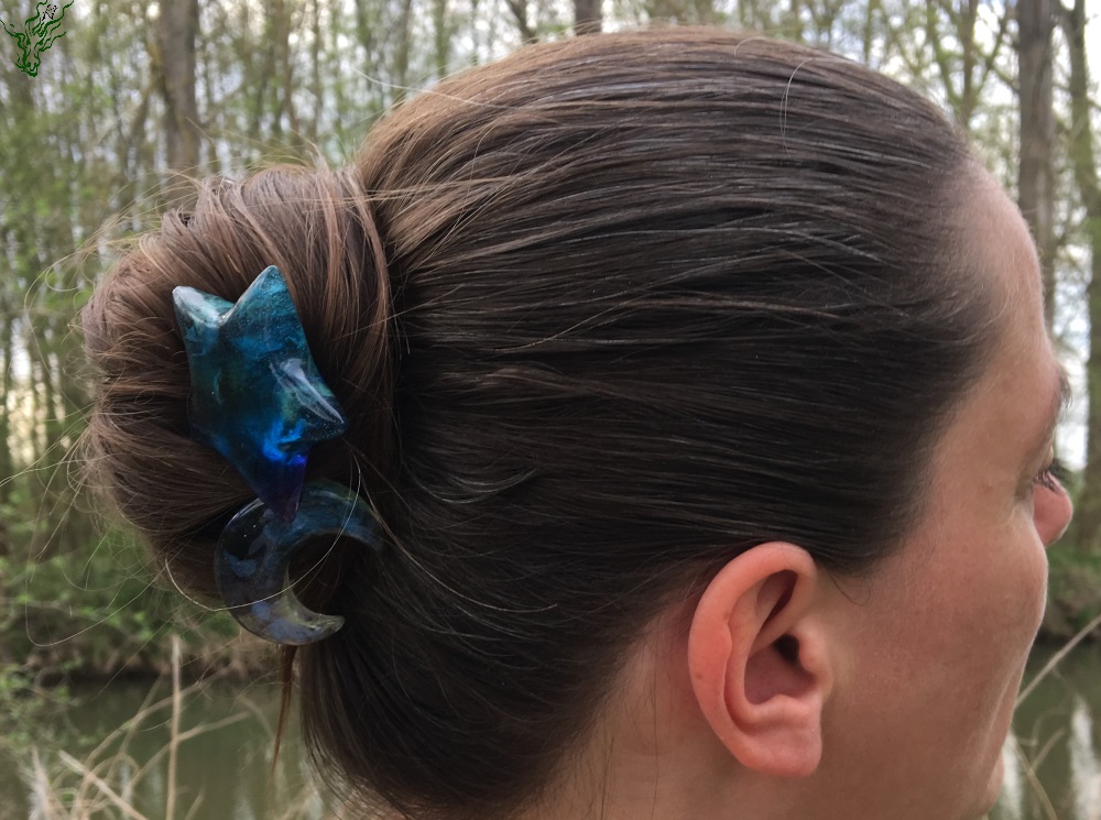 Diese Gletscherstäbe präsentieren glänzendes Resin mit magischer Vielfalt auf aufregenden Hölzern. Mit kleinem Nöpsie für sicheren Halt, so konzipiert, dass sich der Stern wie auch der Mond an deinen Dutt anfügen & perfekt ausbalanciert sind.