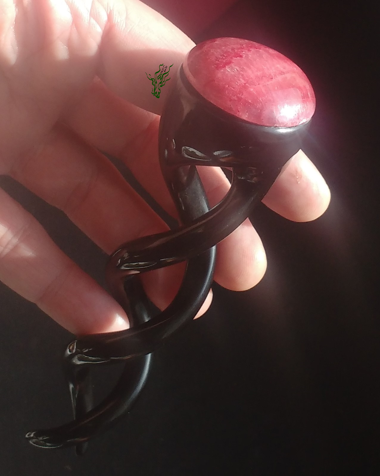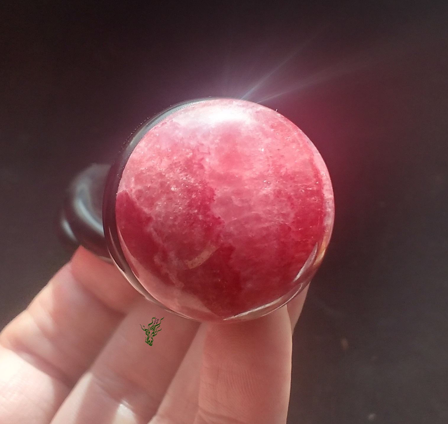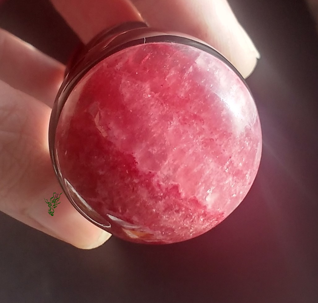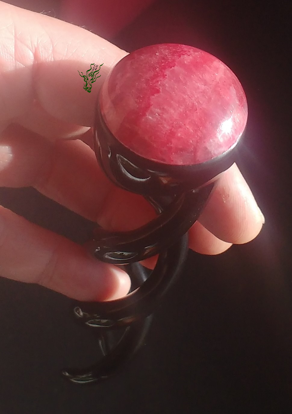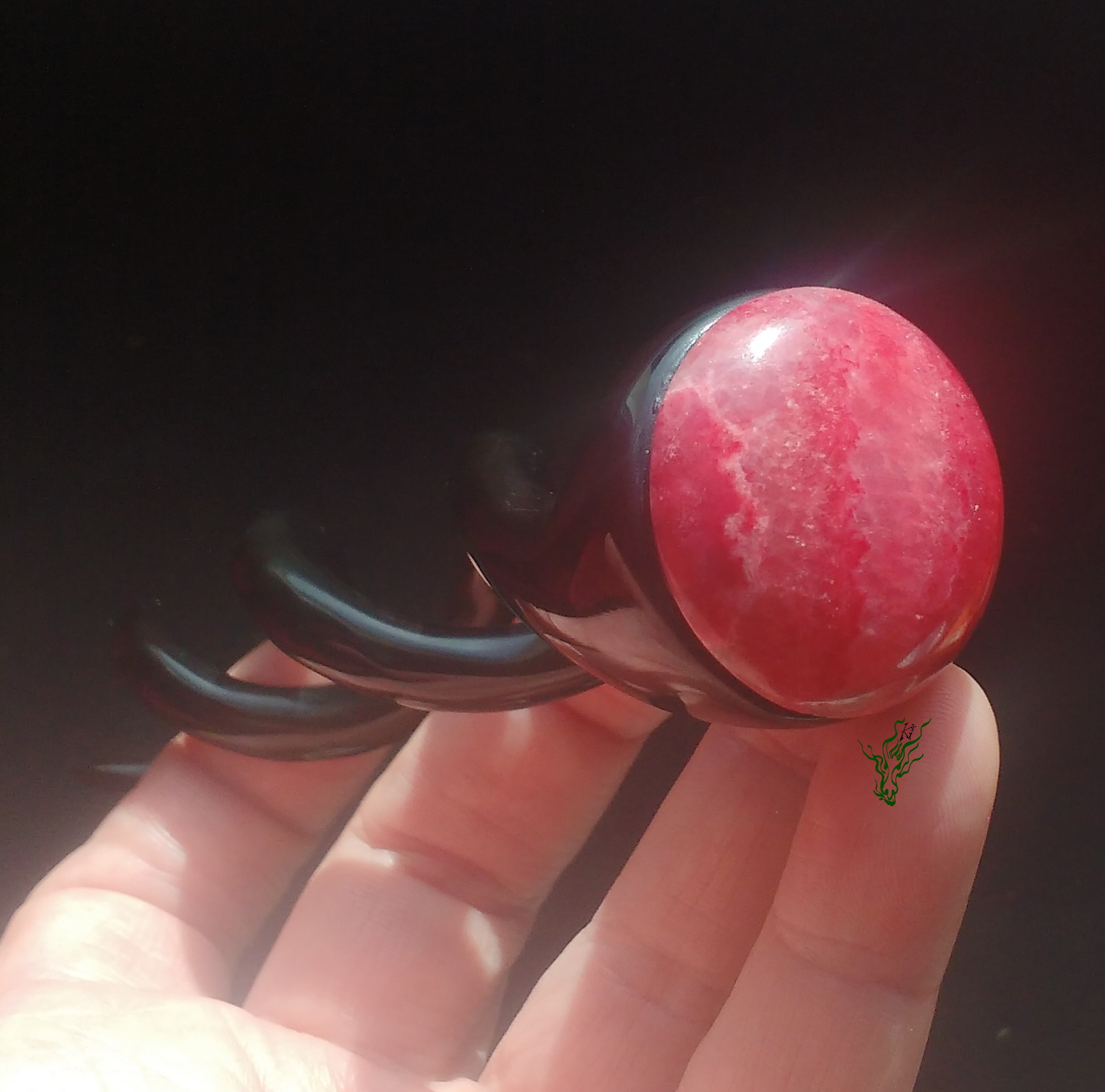 Auf der Suche nach außergewöhnlichen Edelsteinen kam ich nicht umhin, diesen  herrlichen  Rhodochrosit  mitzunehmen. Er ist ungewöhnlich  dunkel- rosa, ja!  Wie Himbeer Crushed Ice. Das  hätte mich schon überzeugt. Er hat aber auch eine besonders ausdrucksstarke  Zeichnung, die diesen Stein zu etwas ganz Speziellem macht.  Energetisch steht er für  Zuversicht & Vitalität.