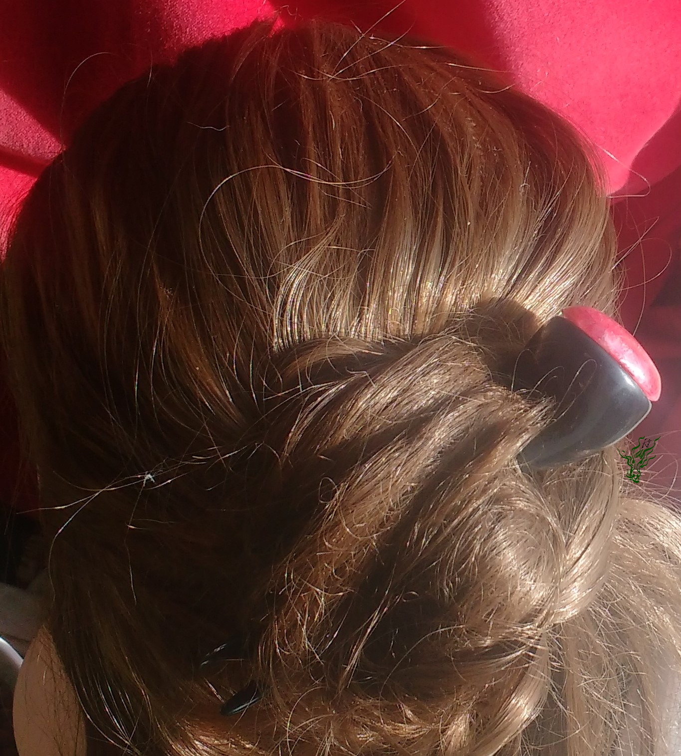 Eine Haarforke  ist ein klassischer Haarschmuck. Damit kannst du deine langen Haare hochstecken.  Das Video von meinem einfachsten Dutt habe ich schon einmal hier gezeigt. Wie man Helixen verwendet, kannst du dir hier im Video ansehen.