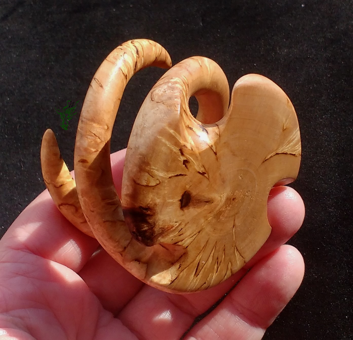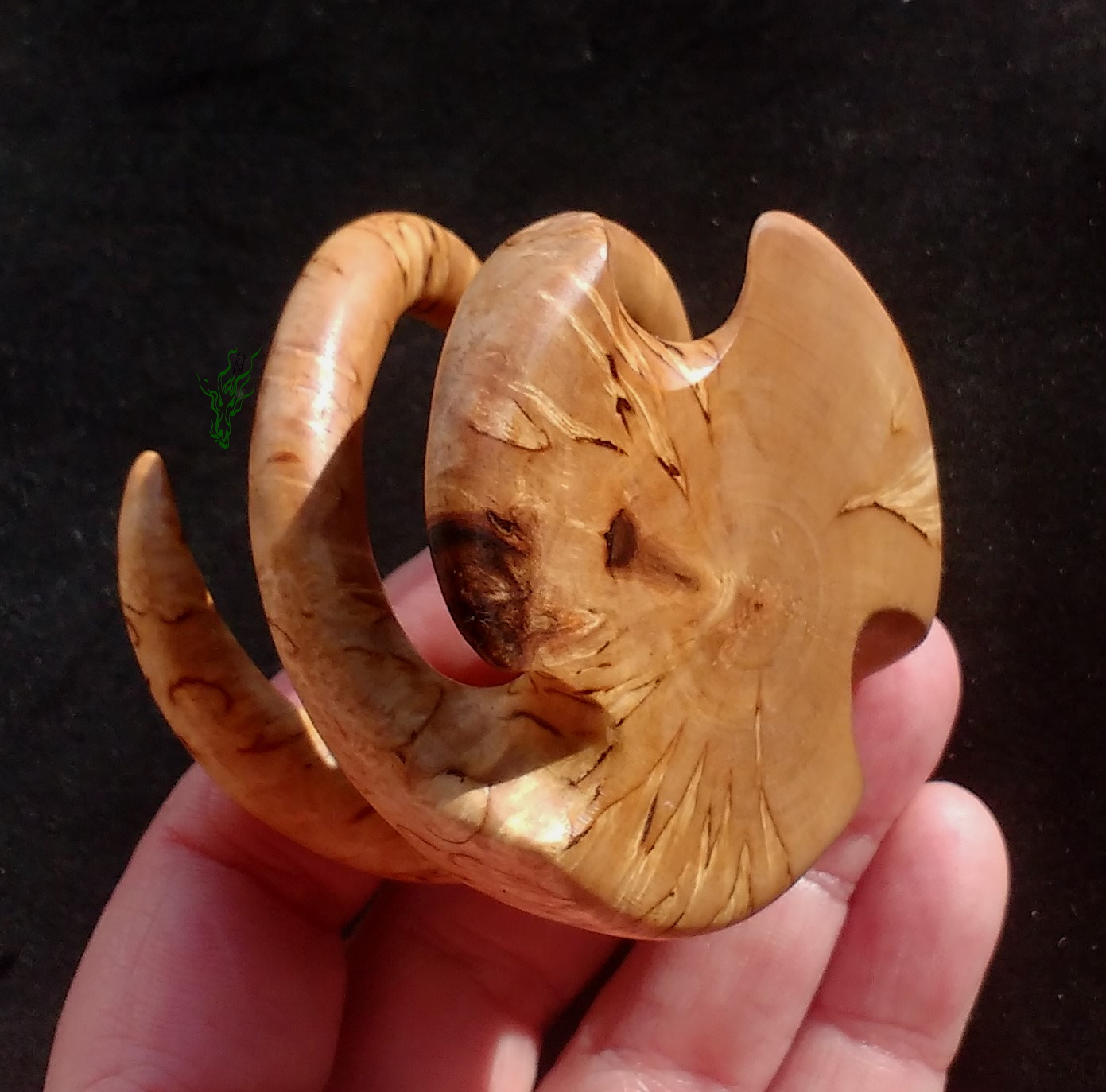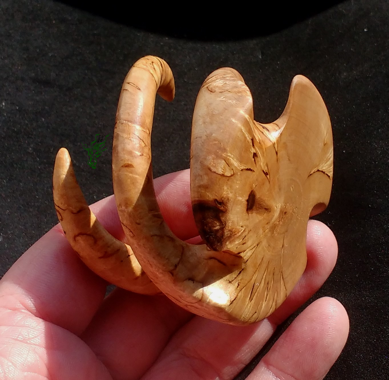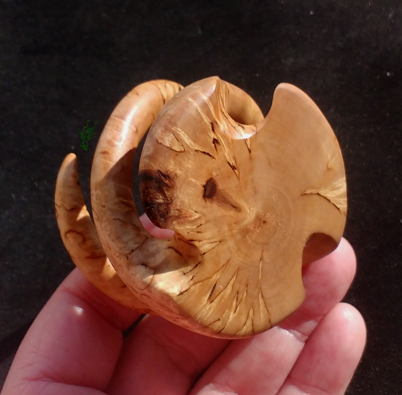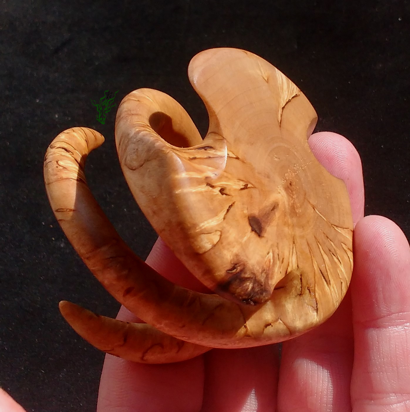 Hand geschnitzt aus unglaublicher  Karelischer  Maserbirke.    Vor Feuchtigkeit geschützt durch meine Wachs- Öl- Mischung & auf Hochglanz poliert.