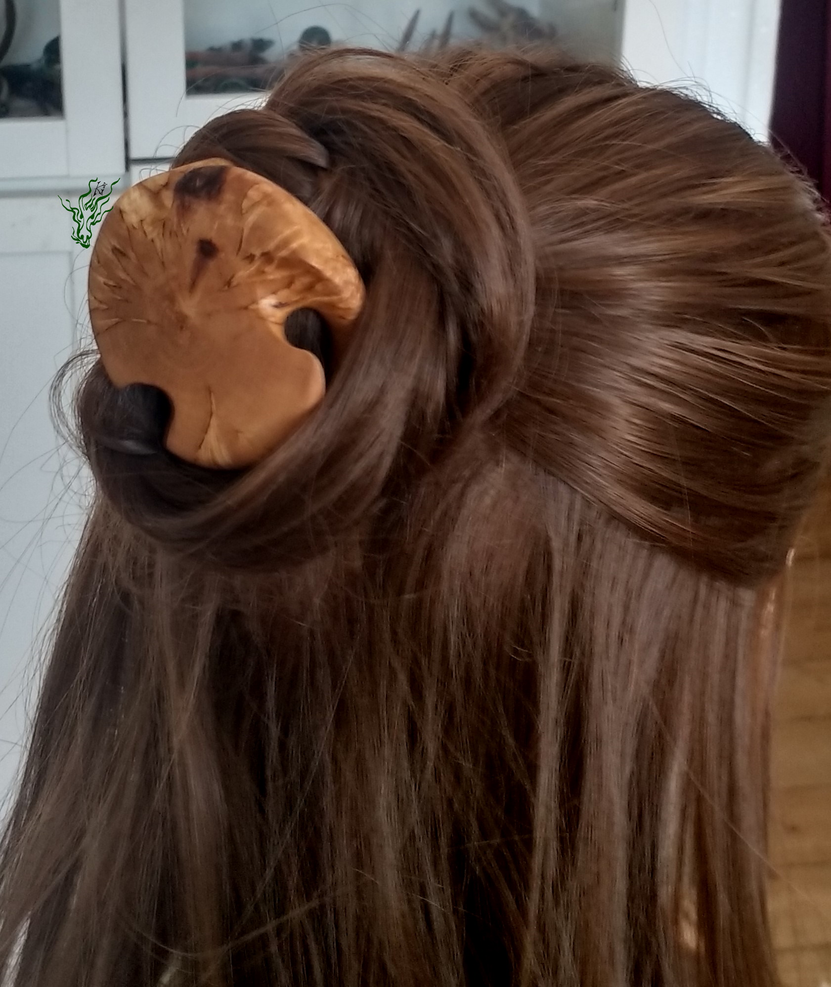 Ich habe ein bisschen rumexperimentiert, um etwas Innovatives  zu  schnitzen, weil mich das Loch im Cinnamon Dutt immer  stört  😀   mit  Helix- Beinen  für  besseren Halt. Die  Spiralform fügt sich in deine Frisur. Du  drehst sie  einfach frontal in den Dutt.  Damit  hält  auch  spontanes  Gewuschel  ^^