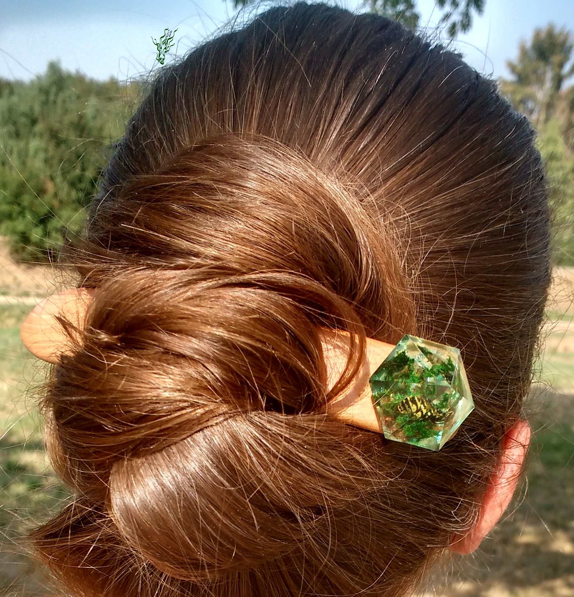 Ein Haarstab ist ein klassischer Haarschmuck. Damit kannst du deine langen Haare hochstecken. Das Video von meinem einfachsten Dutt habe ich schon einmal hier gezeigt.