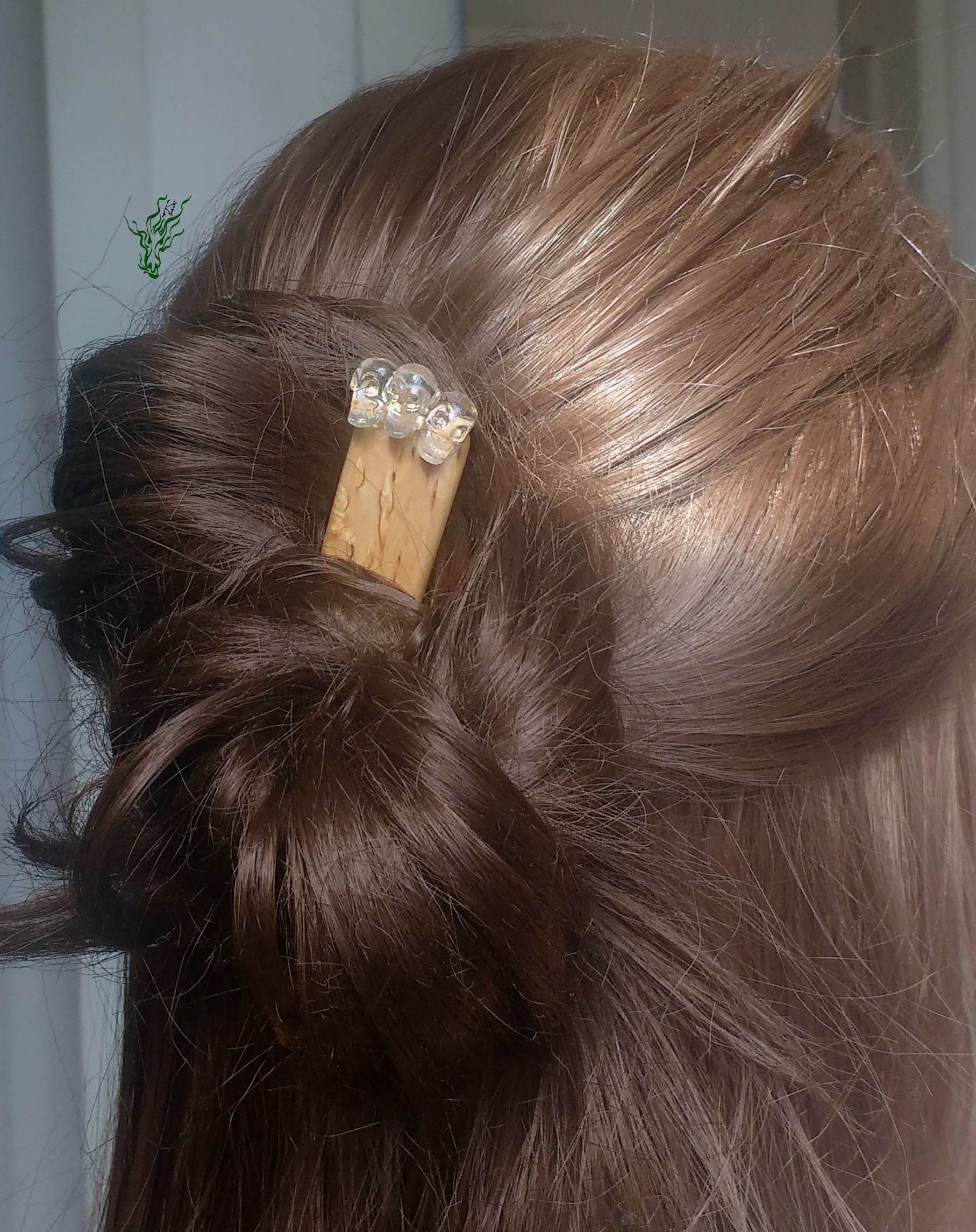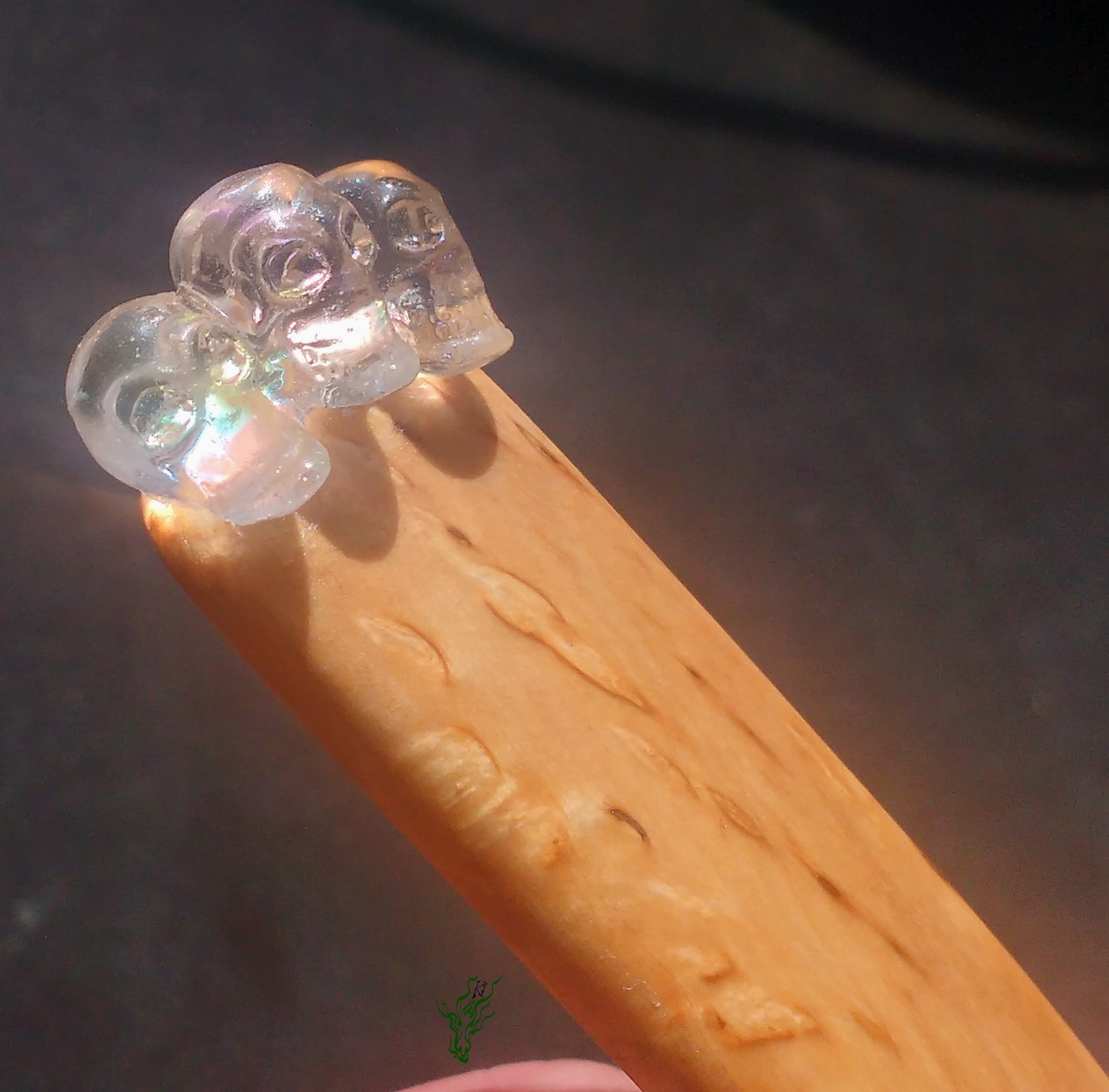 Preview *Kristall auf Gold* Haarstab Holz Skulls
