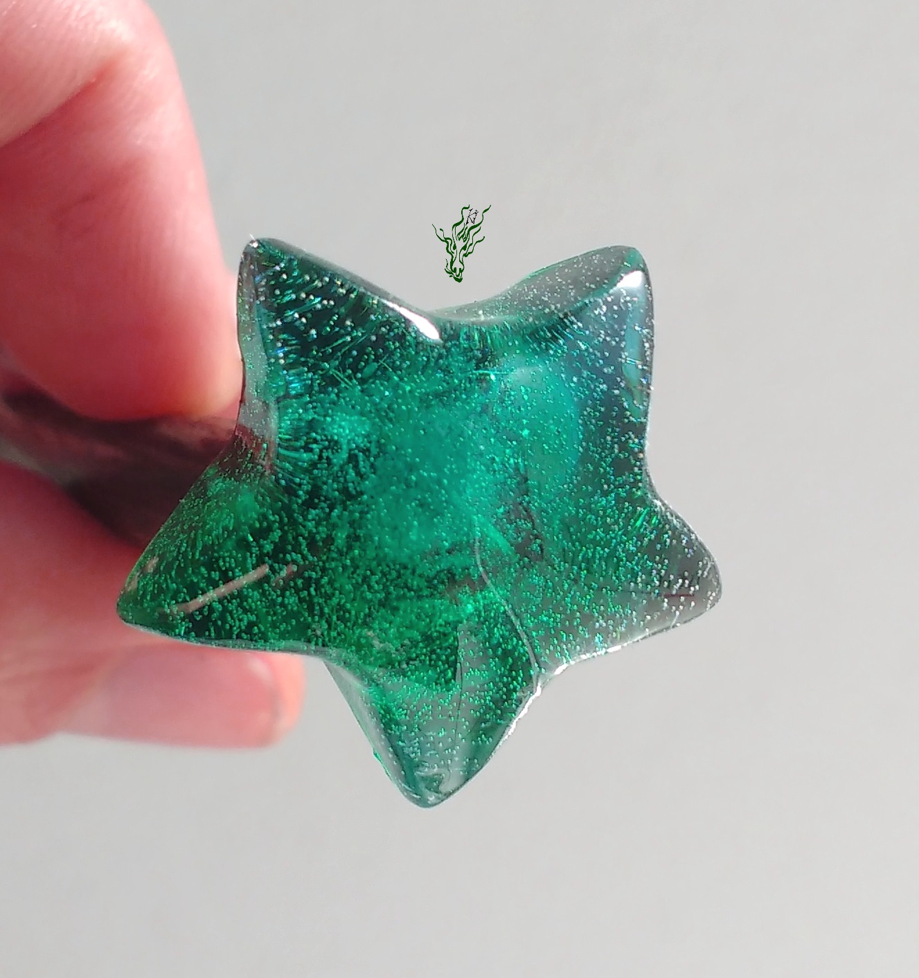 Doch, ein grüner kleiner Stern mit Blubberbläschen hat uns noch gefehlt! Kühl grüner, smaragdiger Stern mit ein bisschen blauem Geflimmer und geheimnisvollem Innenleben.
