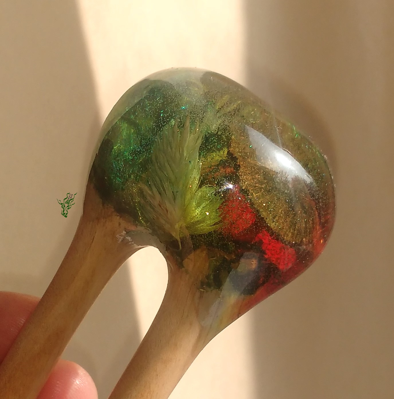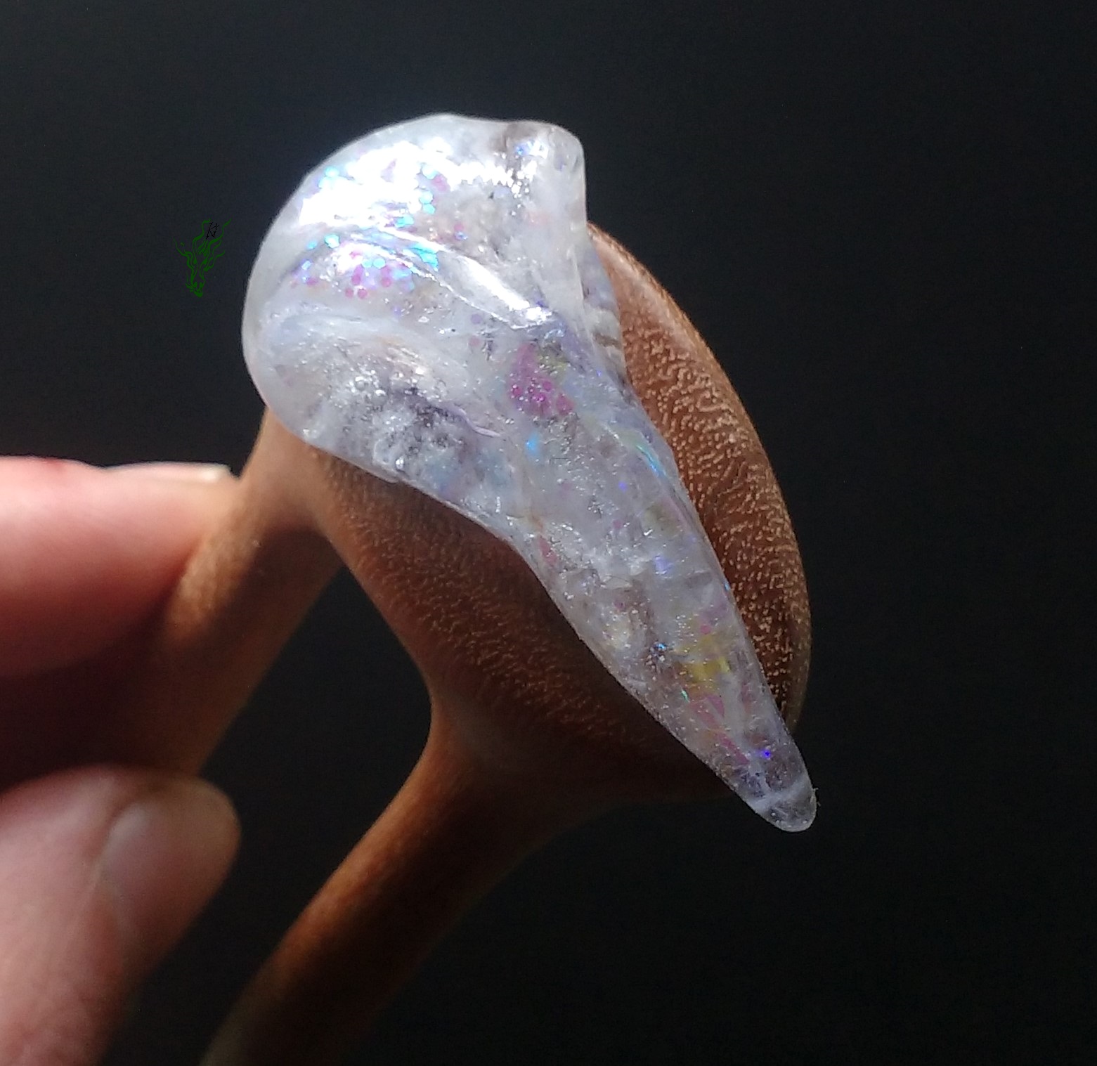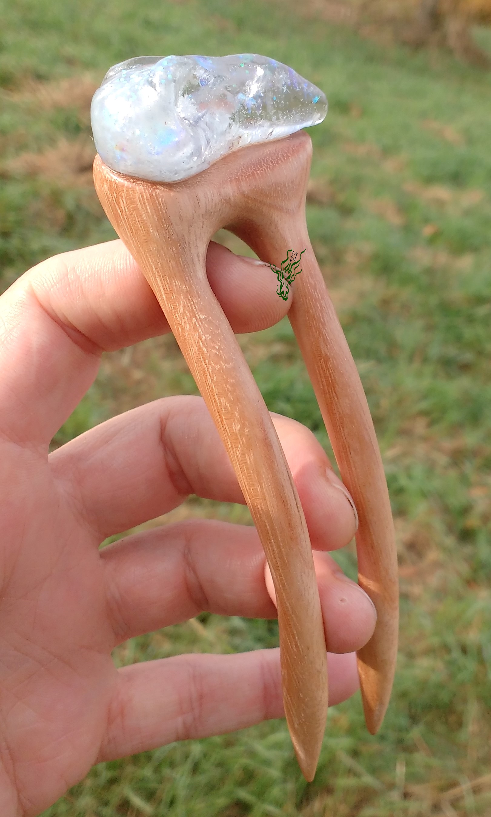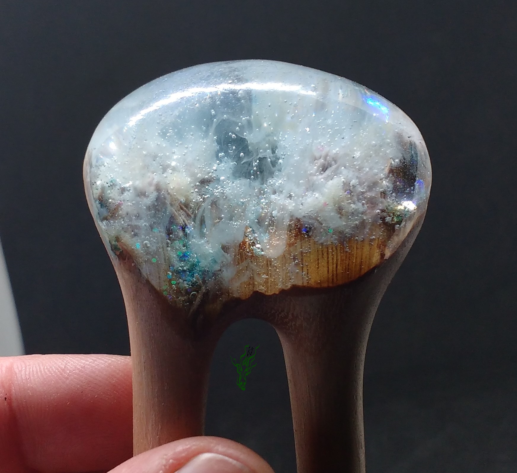 So, meine Spielkinder, wer sich an meine Anfangszeiten erinnert, weiß bestimmt noch, dass so´ne Schneekugel- Geschichte mich die ganze Zeit gereizt hat. Für alle Mädchen, die sich nach Einhörnern sehnen: eine Haarforke mit Bullauge, in dem ordentlich Glitzer & Tigerauge- Splitter schwimmen. Ich mag, wenn die Dinge sich bewegen. Hier bewegt sich ganz viel, du musst nur ein bisschen schütteln ^^