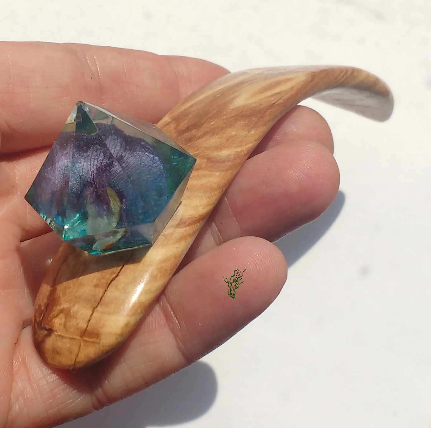 Dieses Apfelholz ist von der Sorte Holz, das sich zunächst durch verquirlte Streifen outet und beim Schleifen langsam seine Schönheit entfaltet… und wenn du es dann polierst… hach … Solche Tage genieße ich laut singend, haha! Und ich war so gespannt, wie es dann geölt aussieht… Na jedenfalls: damit habe ich mein Wochenende extatisch verbracht. Natürlich muss solch unglaubliches Holz stellenweise stabilisiert werden, aber den Zusatzaufwand nehme ich gern in Kauf. Echt cooles MackenHolz… so wie es der Jadedrache liebt.