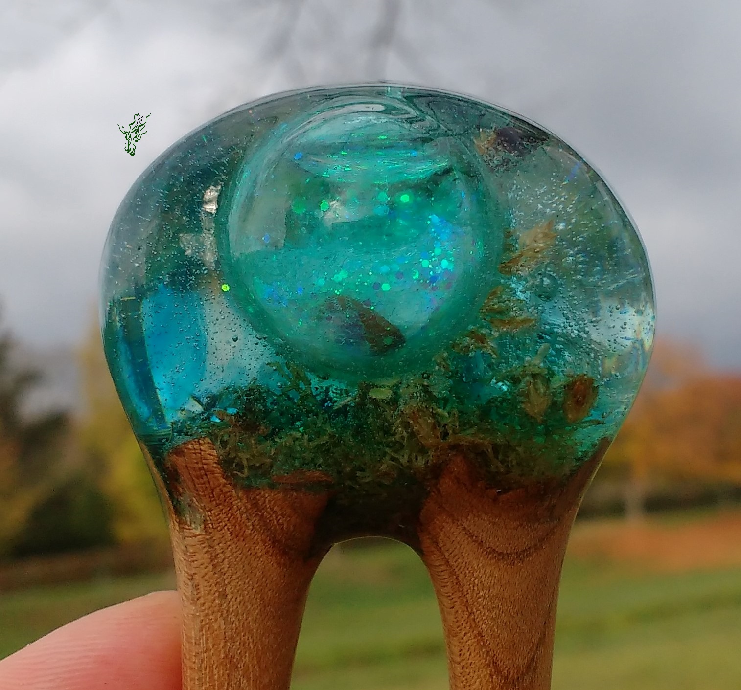 So, meine Spielkinder, wer sich an meine Anfangszeiten erinnert, weiß bestimmt noch, dass so´ne Schneekugel- Geschichte mich die ganze Zeit gereizt hat. Für alle Mädchen, die sich nach Einhörnern sehnen: eine Haarforke mit Bullauge, in dem ordentlich Glitzer & Tigerauge- Splitter schwimmen. Ich mag, wenn die Dinge sich bewegen. Hier bewegt sich ganz viel, du musst nur ein bisschen schütteln ^^