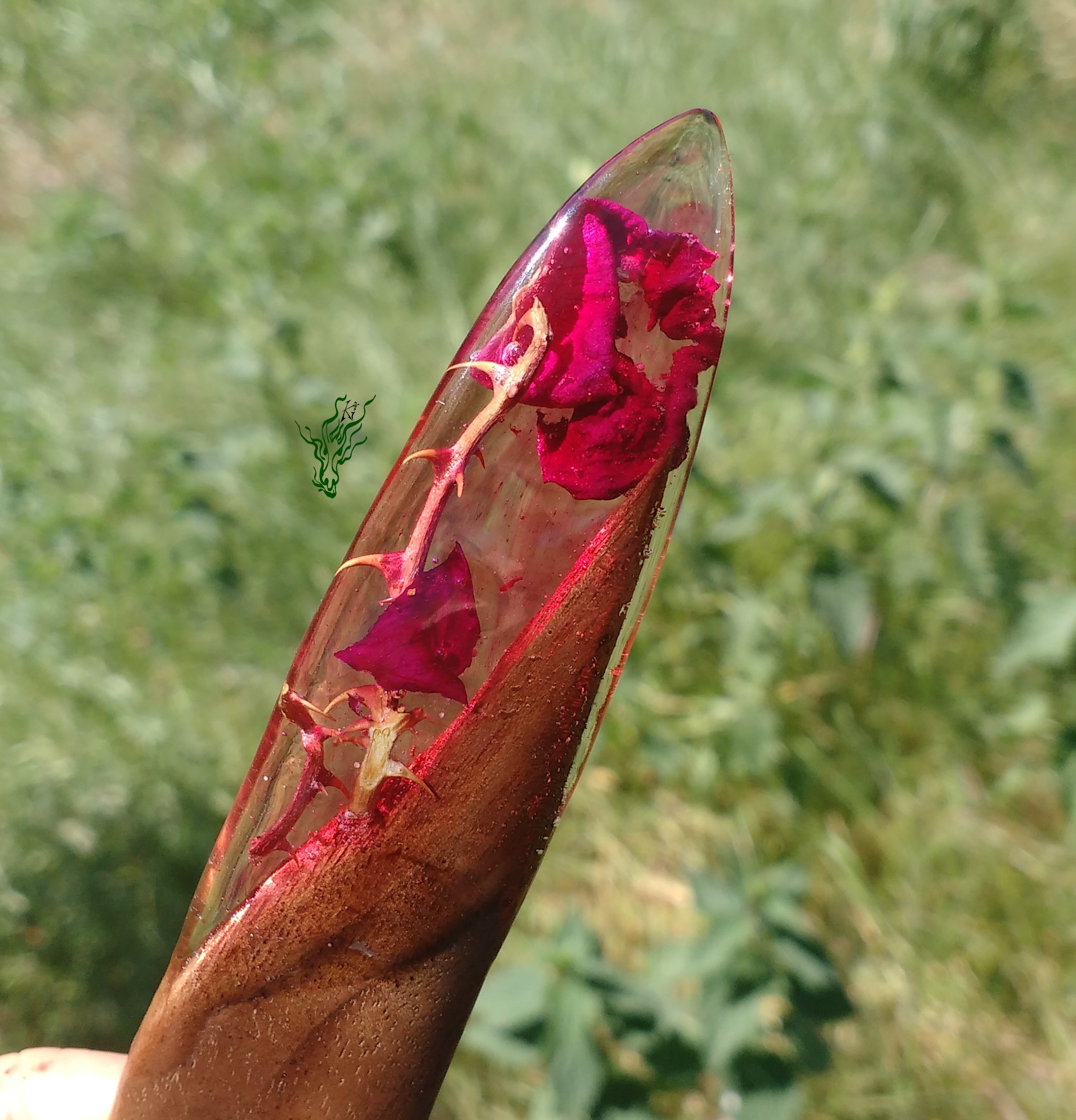 „Die Dornen, mein Kind, sind wie die Blüte Teil von mir. Und danke, dass deine Liebkosung so vorsichtig ist. Wir alle sind zart und dornig, und deshalb zeig ich dir: Dein Blut – rot wie ich – fliesst, weil dein Herz verletzlich ist.“ ***