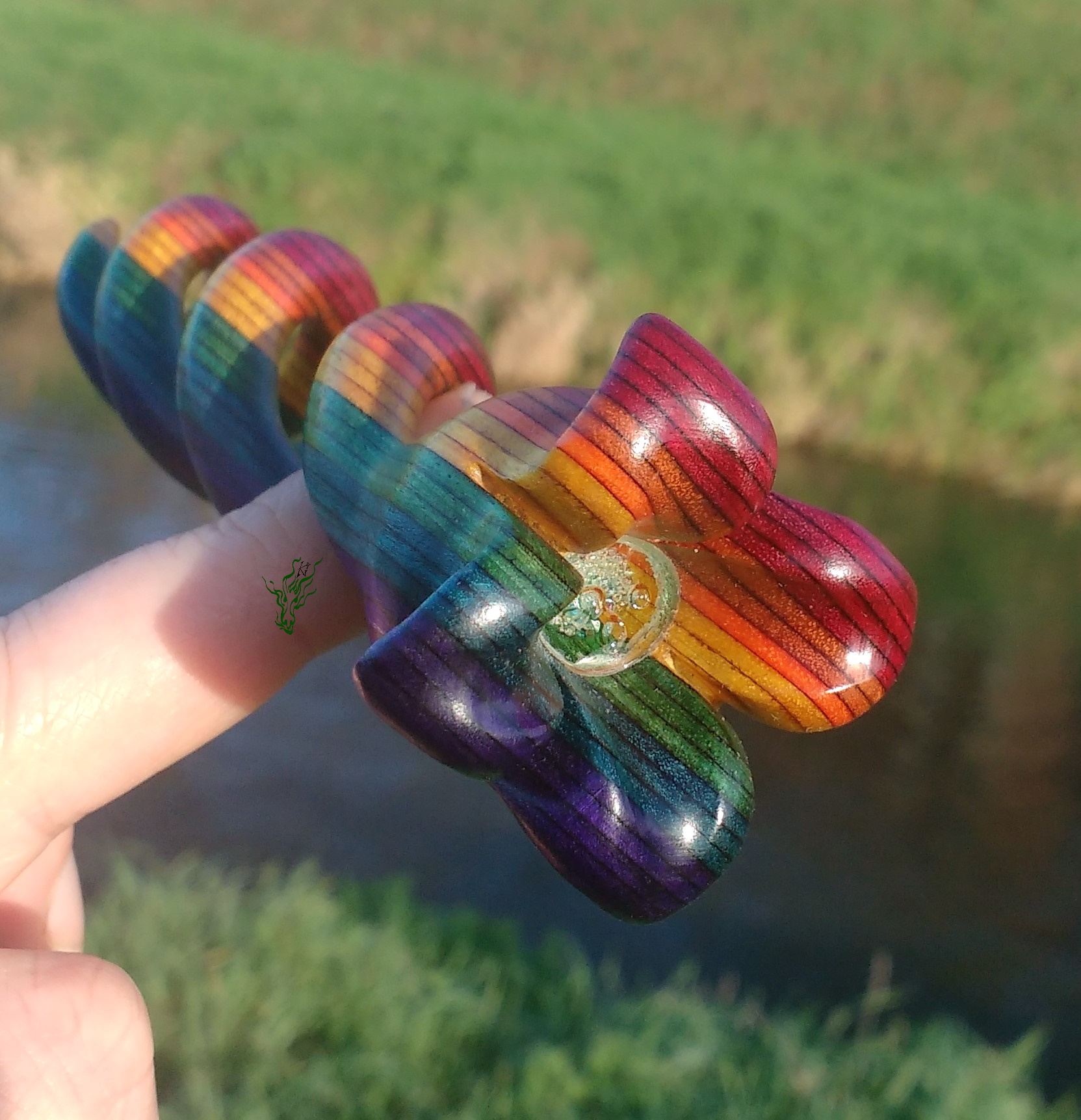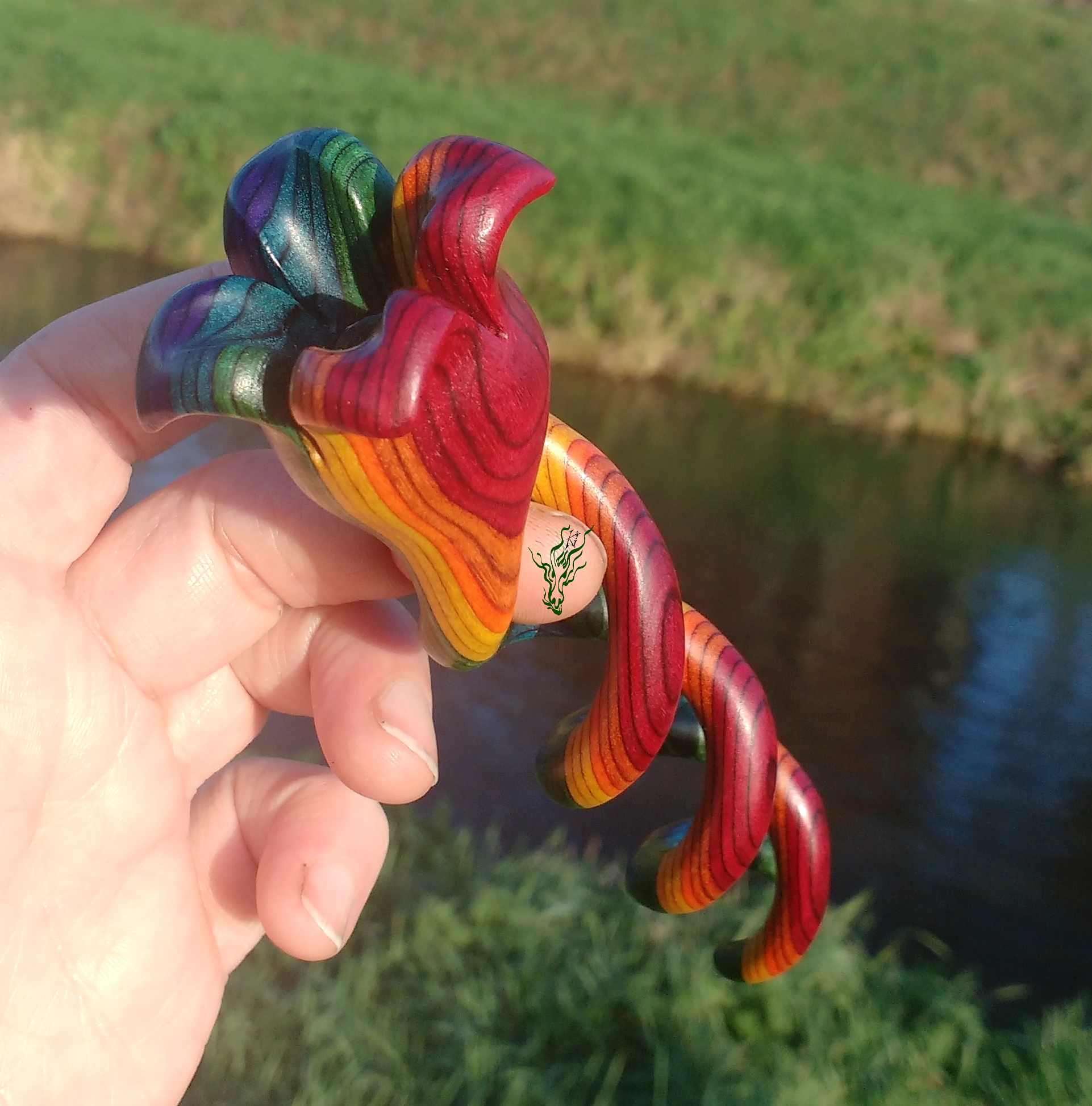Ob der dunkelblaue oder der türkise Labradorit, der runde oder der augenförmige Mondstein oder der wassermelonige Rubin Zoisit- jeder Edelstein aus dem Schatz des Jadedrachen gibt seinem Helix Haarstab den besonderen Schliff. Ich habe sie in mysteriös scheinende Topper gefasst.